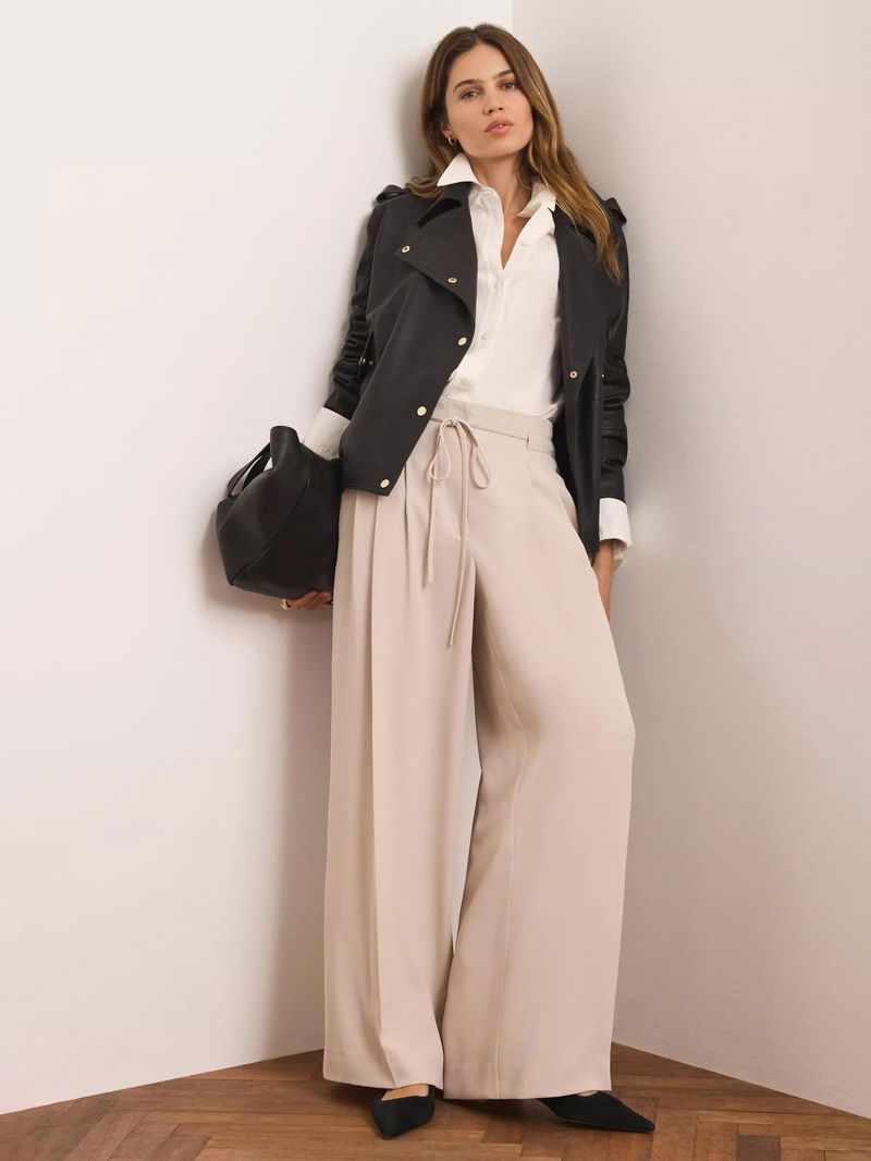 Exaggerated lines meet a power-like stance in these wide-leg trousers from Mint Velvet. This style is cut to sit mid rise with a tie waist and regular length hems.