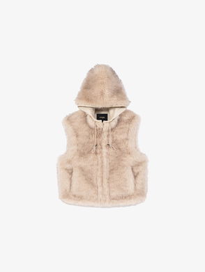 A faux fur gilet featuring a crew neckline and toggle fastening through the front.