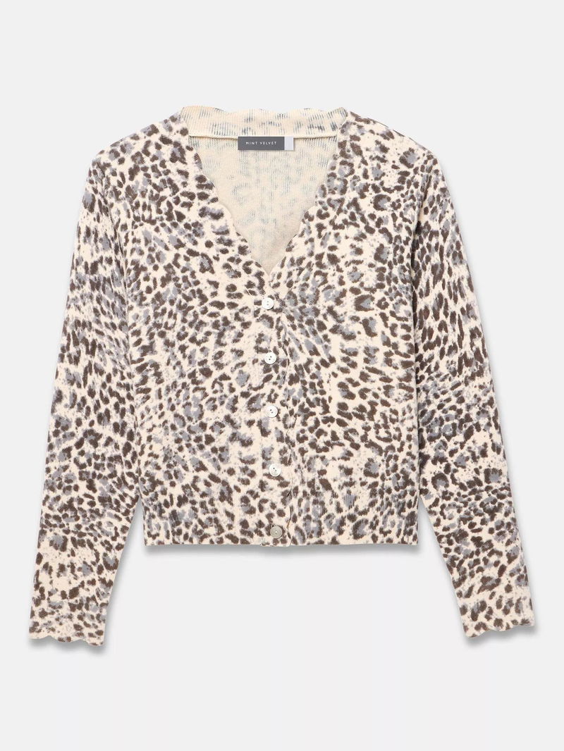 V-Neck Leopard Print Cardigan, Brown Camel