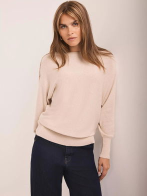 A cotton-blend V-neckline jumper with long batwing sleeves, elongated cuffs and seam detail.