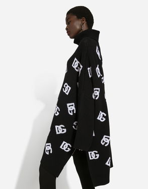 A wool-rich poncho cape with a fold-down neckline and fringed trim.