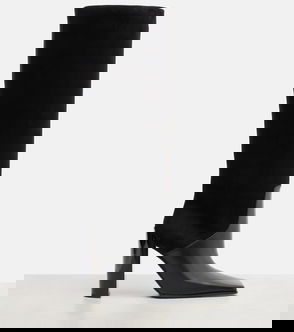 Crafted in Italy from suede, the Miralone knee-high boots from Manolo Blahnik are lined with leather. This design features leather insoles and soles on pointed-toe silhouettes.