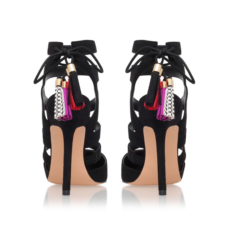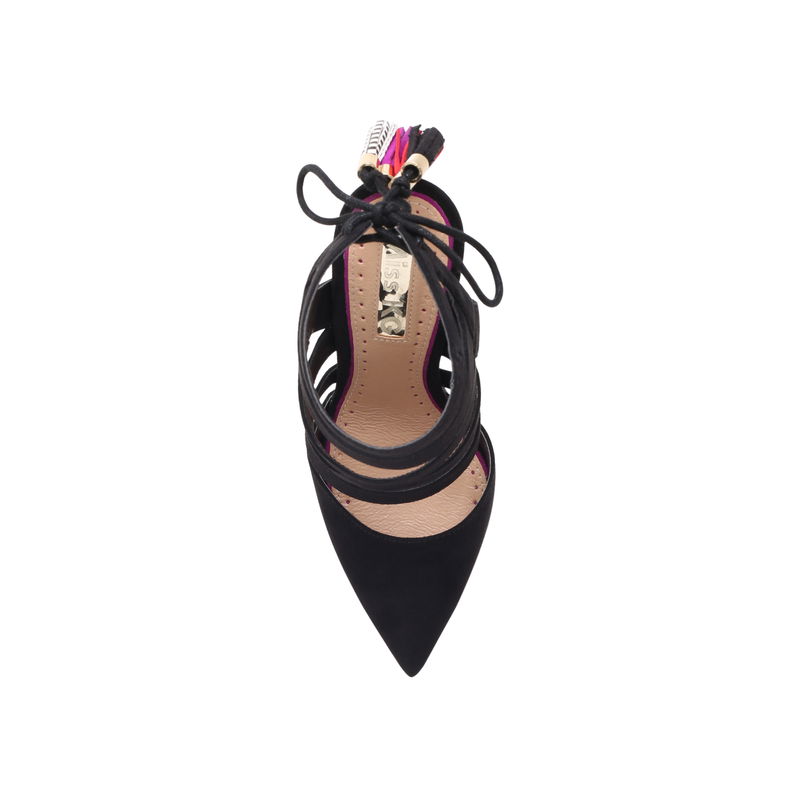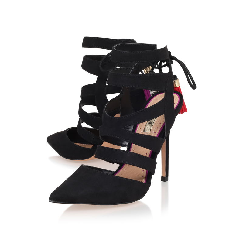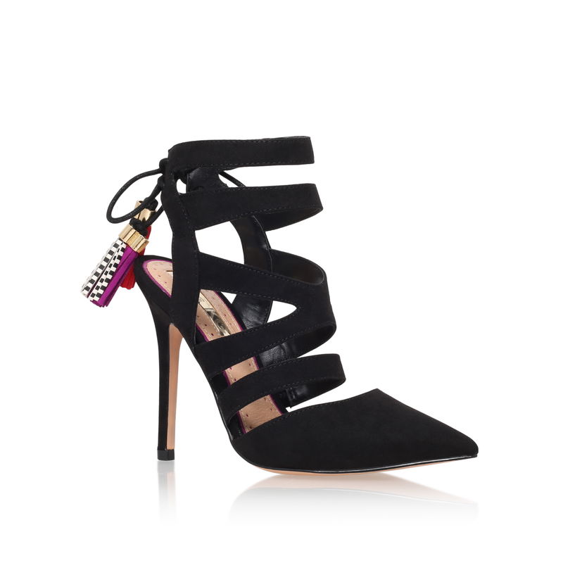 Black court shoes enter a whole new level of chic with Alana by Miss KG. These high-fashion heels fuse straps with coloured and textured lace-up tassels for a truly look-at-me touch. Classic pointed toes balance the fun with a dash of femininity.