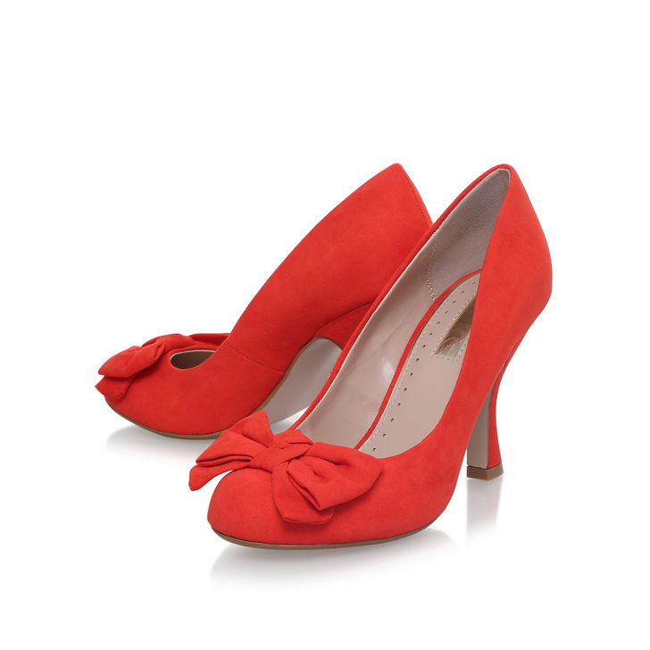 Blending bold hues with 50s' flavour, Norma from Miss KG is an instant classic. Set on a characterful 90 mm flared heel, the intense scarlet uppers are rounded off with a feminine bow trim at the toe. Perfection with a bold red lip.