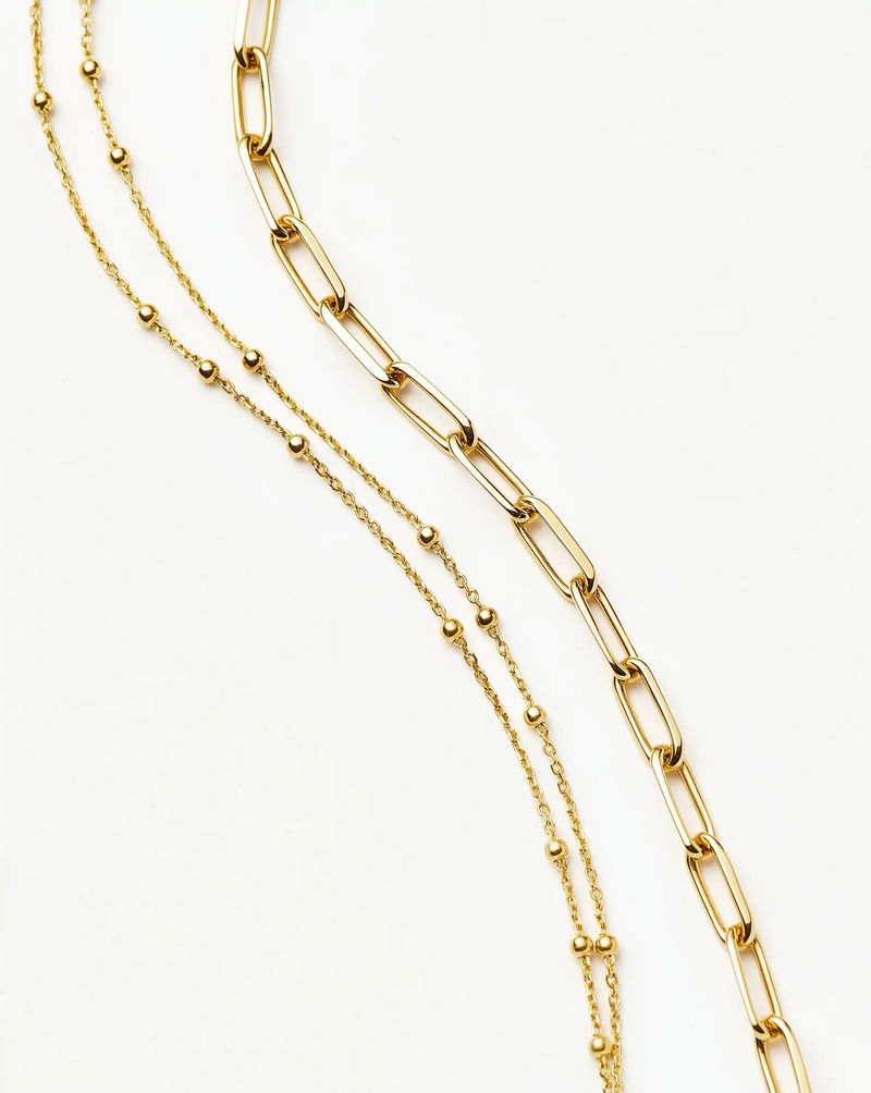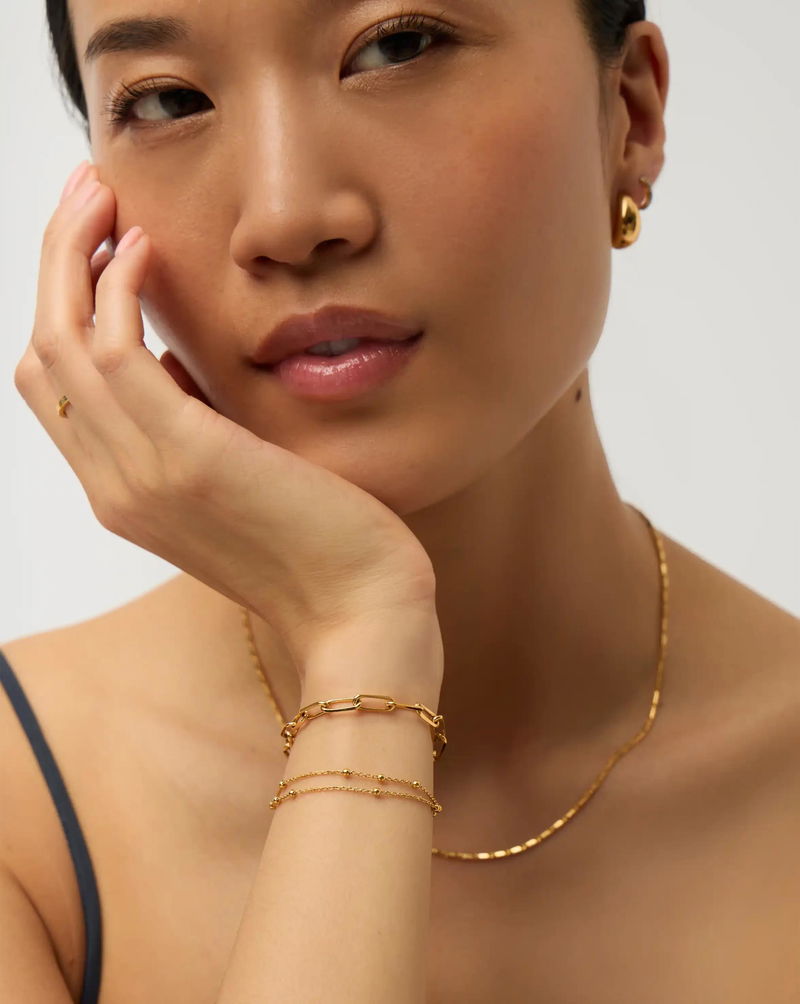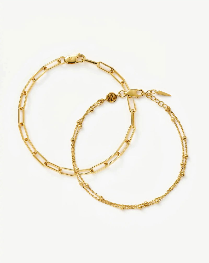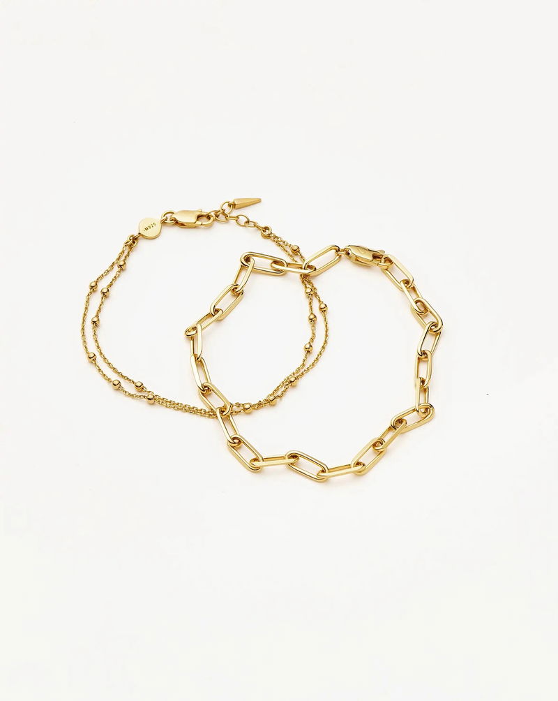 The best selling Double Chain Bracelet teamed together with the Classic Mini Paperclip Chain Bracelet create the perfect arm stack for everyday.