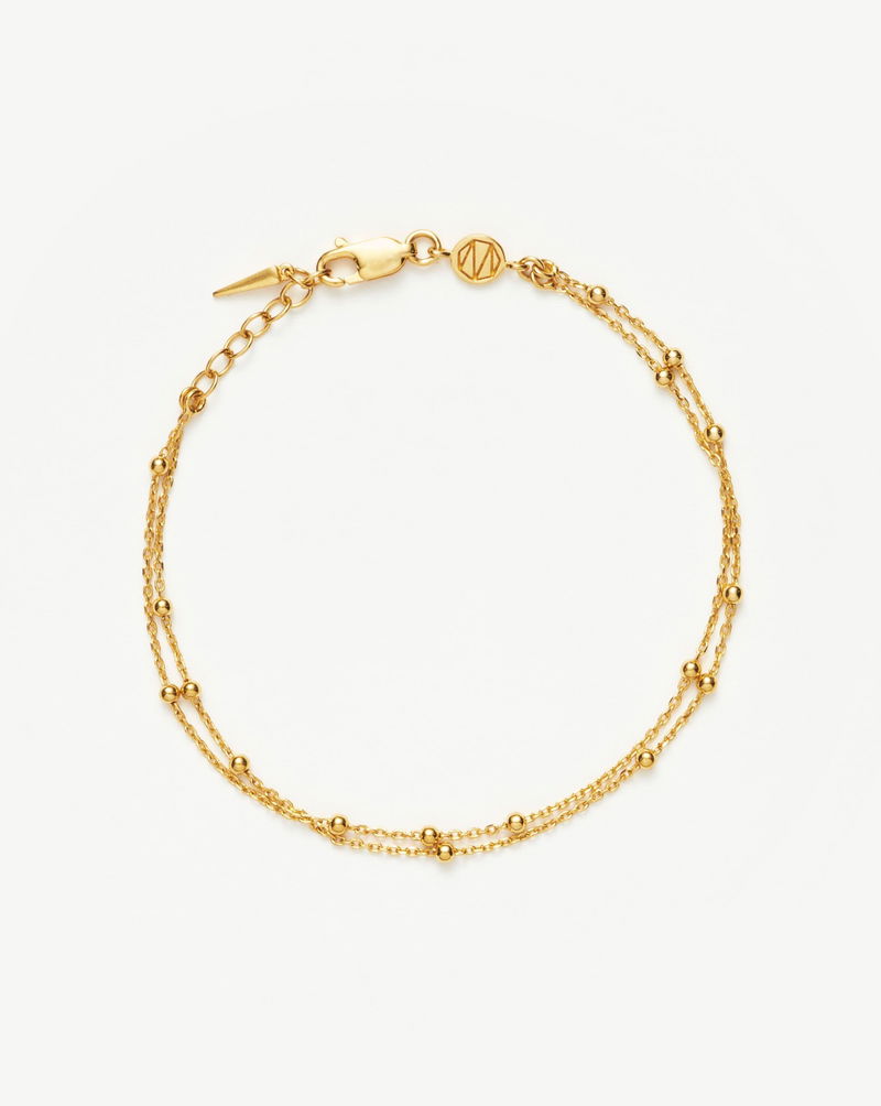 Upgrade your layers with a delicate addition. Featuring two chains with bobble detailing, this best selling bracelet easily fastens with a clasp. Two bracelets in one, pair with a cuff for the ultimate arm stack or with the matching double chain necklace. Layer for less when bought as a set Aegis Double Chain Bracelet Set.