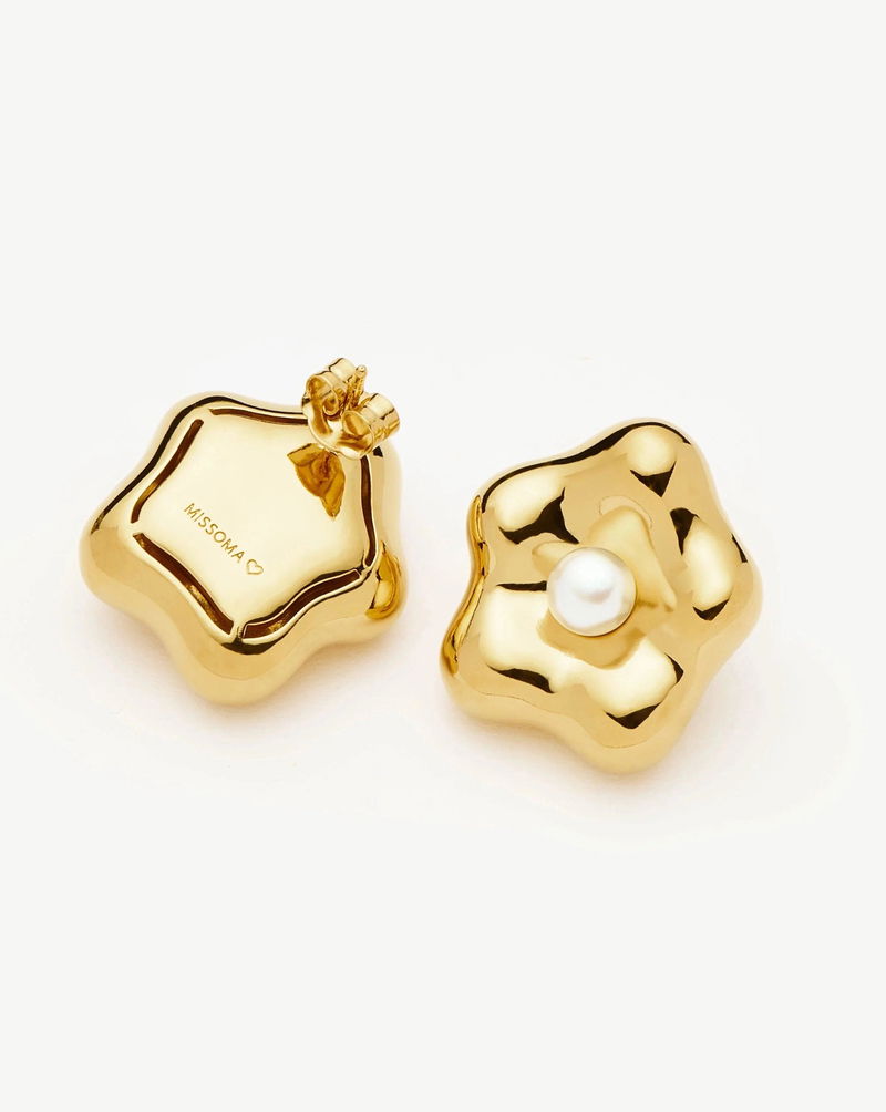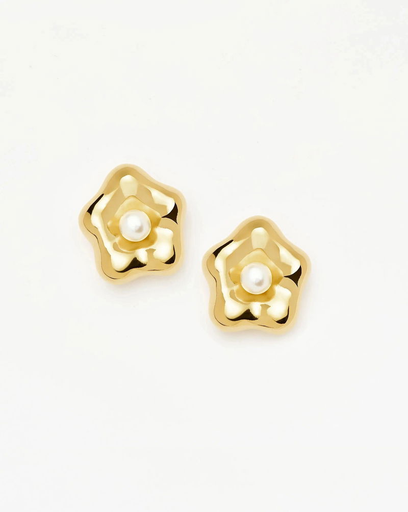 Inspired by Eny Lee's signature sculptures, these statement daisy studs feature a central button pearl. Perfect for elevating your look at any occasion. A collection designed in collaboration with New York ceramicist, designer, and artist, Eny Lee Parker.