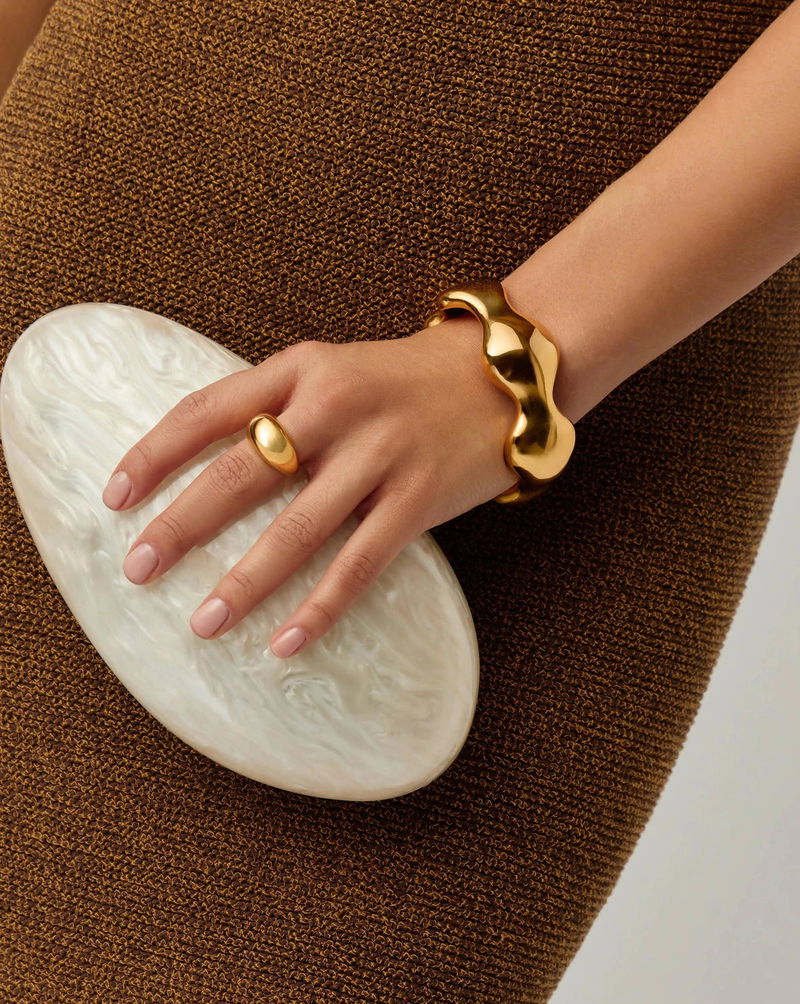 This super chunky open cuff features a voluminous puffy dome design inspired by Eny Lee Parker’s signature sculptures.