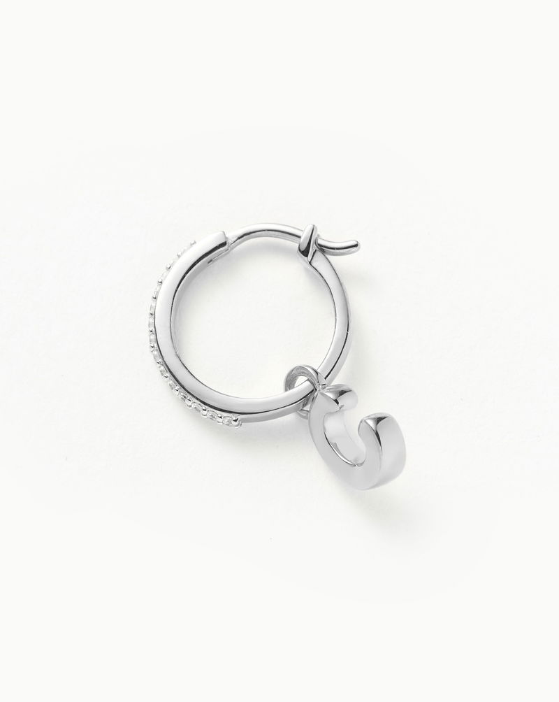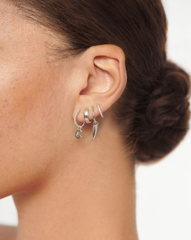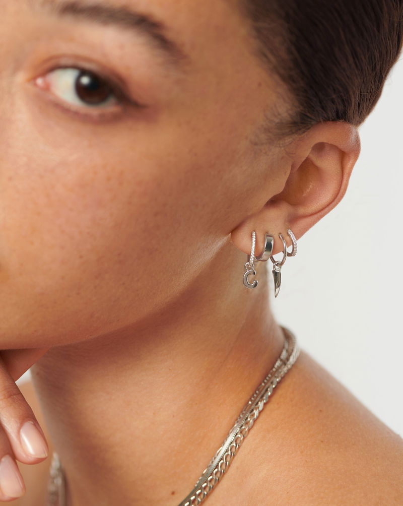 Spell it out, this one's for you. The perfect way to add a personal touch to your ear stack, the retro-inspired alphabet drop pendant is paired with a pavé mini hoop earring.