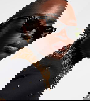 These vintage-inspired black cat-eye sunglasses feature gold ridge heart detailing inspired by our best selling charm. The frames have uniquely squared corners. Style with your favourite clip-on sunglasses chains to complete the look.