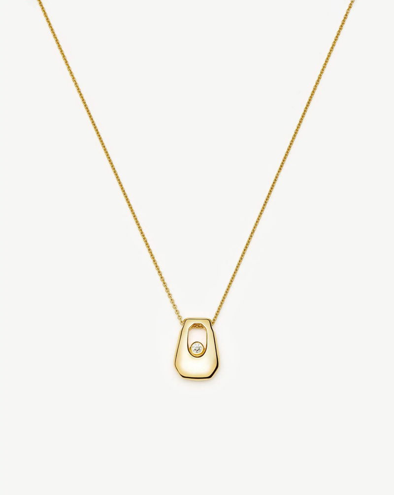 Celebrating ten years of the original jewellery collaboration with style icon Lucy Williams. A refined take on a Lucy Williams classic, this pendant necklace features the iconic Arco pendant with a single cubic zirconia stone set in the middle. This pairs perfectly with our new Arco Pavé Small Hoops.