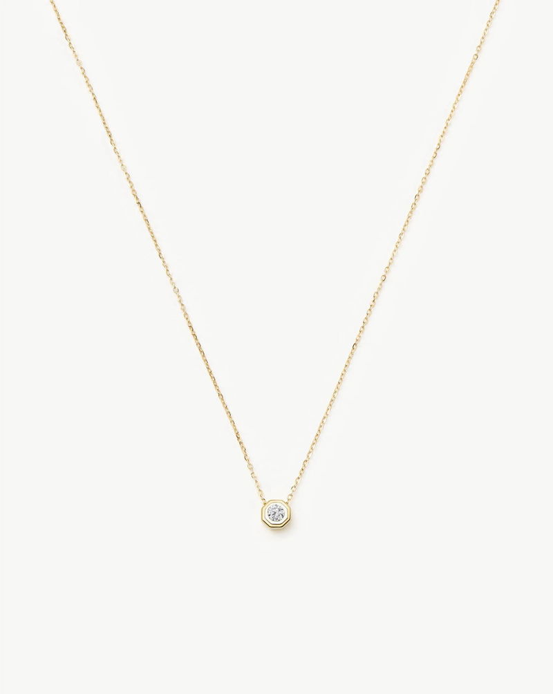 Celebrating ten years of the original jewellery collaboration with style icon Lucy Williams. This timeless fine pendant necklace features a solitaire lab grown diamond bezel set into a hexagonal 14ct solid gold pendant. Style with the iconic Lucy Williams Entwine Small Hoops, or discover the full collection of best selling pieces from our longest-standing collaboration.