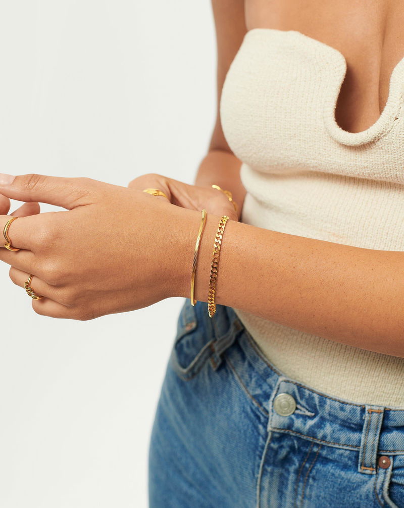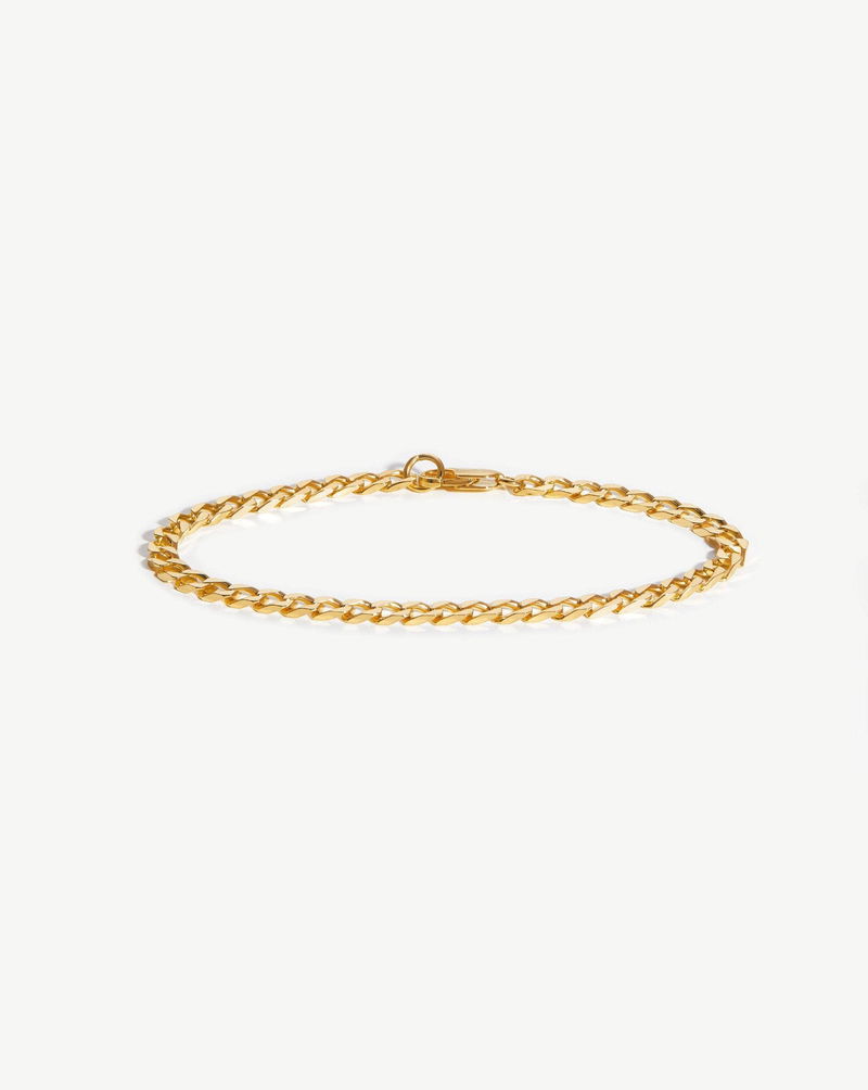 A delicate addition to your arm stack. This distinctive flat chain bracelet features squared-off links for a retro-inspired finish and fastens with a claw clasp. Layer with a snake chain for a more impactful look.