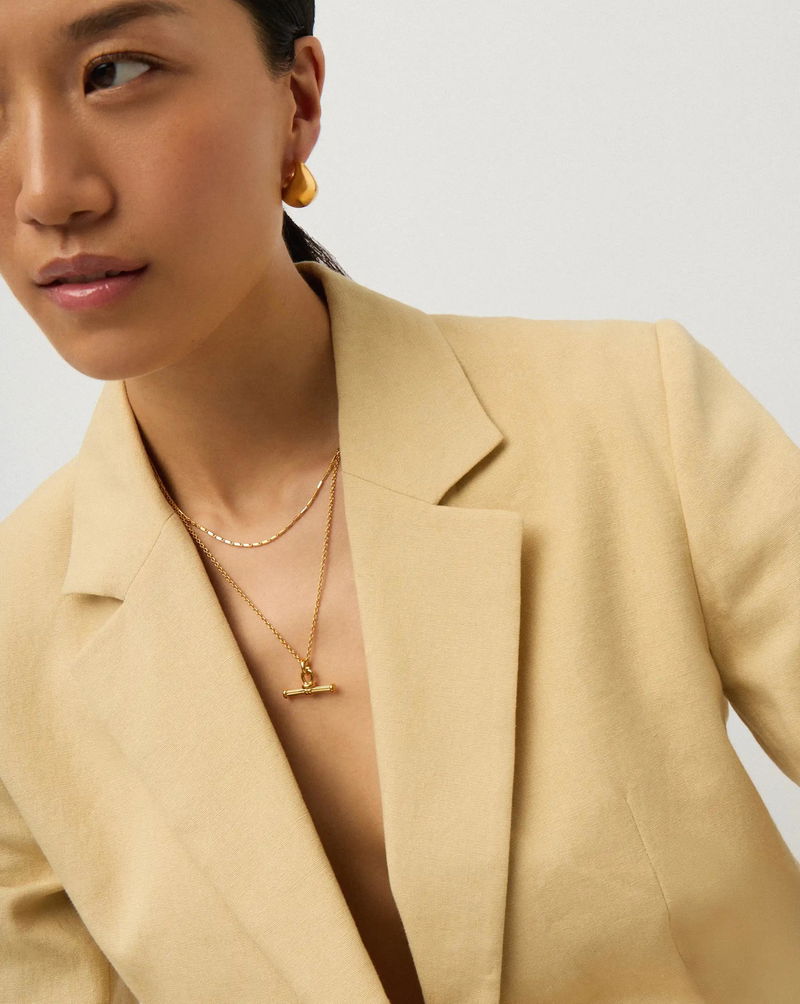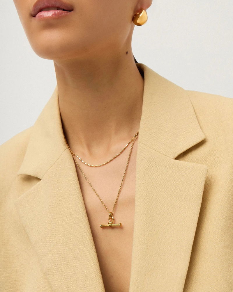 Lucy Williams iconic Horizon Link Chain Necklace, now in a new gold colourway, teamed together with our best selling Ridge T-Bar Necklace.