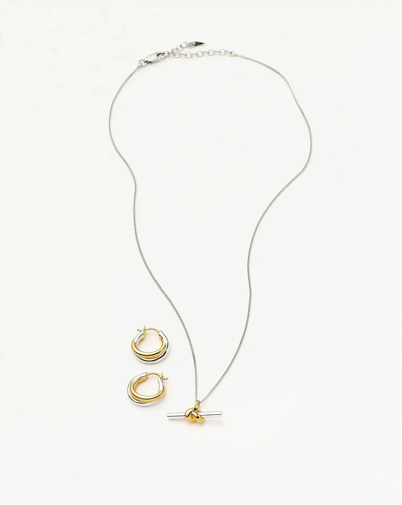 Two Lucy Williams icons teamed together. The new Knot T-Bar Pendant Necklace and the best selling Entwine Small Hoop Earrings create the perfect everyday set.