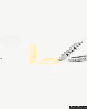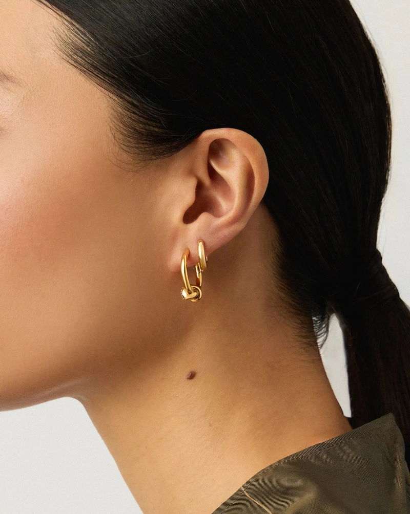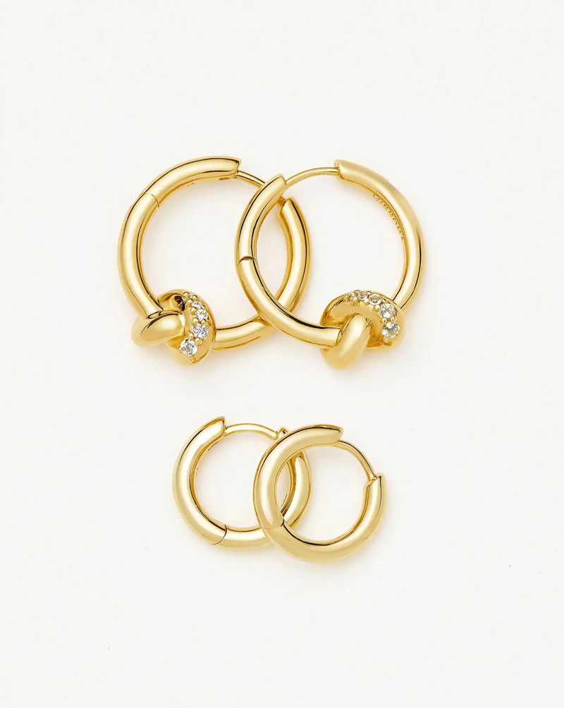 Upgrade your everyday ear stack with this must-have set. Teamed together, the new Lucy Williams Pavé Knot Hoop Earrings and our Classsic Tunnel Hoop Earrings.