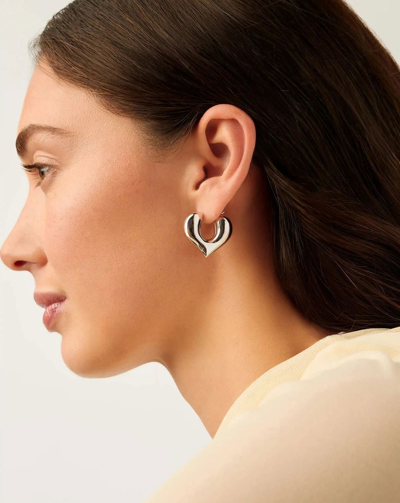Heart yourself with these new medium-sized hoops, bringing a modern romantic edge to your everyday styling. Striking the perfect balance between being bold but also soft soft and sculptural, wear solo or stack up with mini hoops and studs.