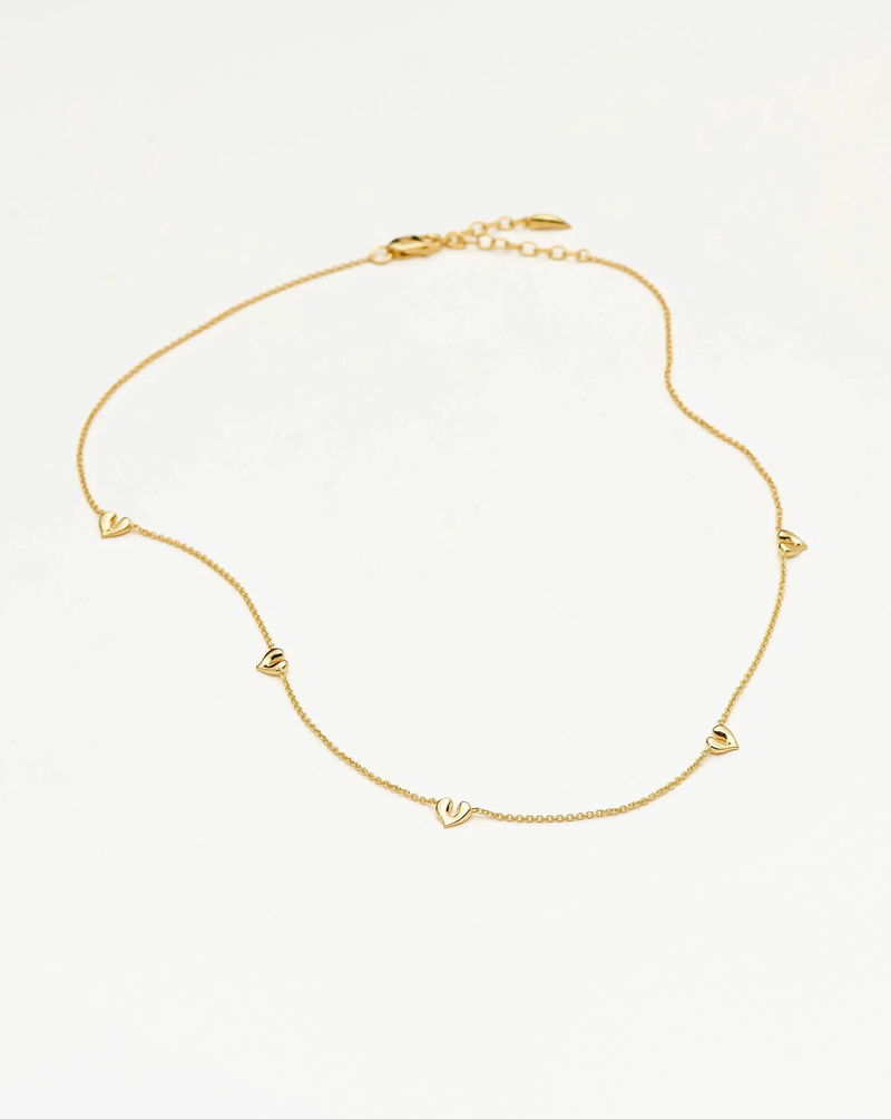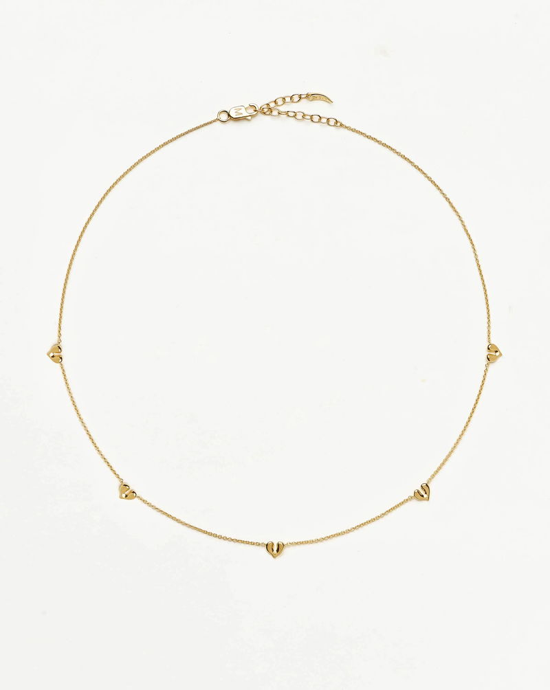 This everyday choker makes the perfect layering piece, featuring five mini heart charms. On a delicate chain, layer with shorter necklaces or pair with the Molten Heart Medium Hoop Earrings.