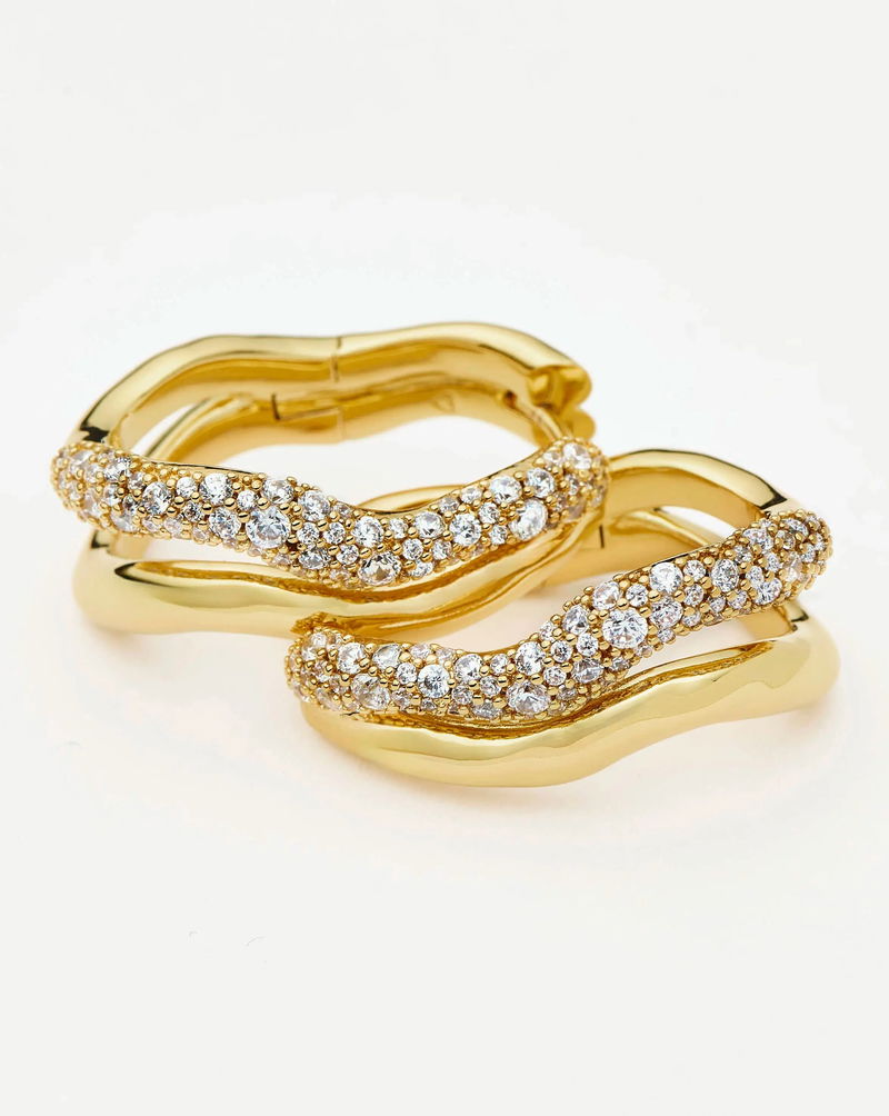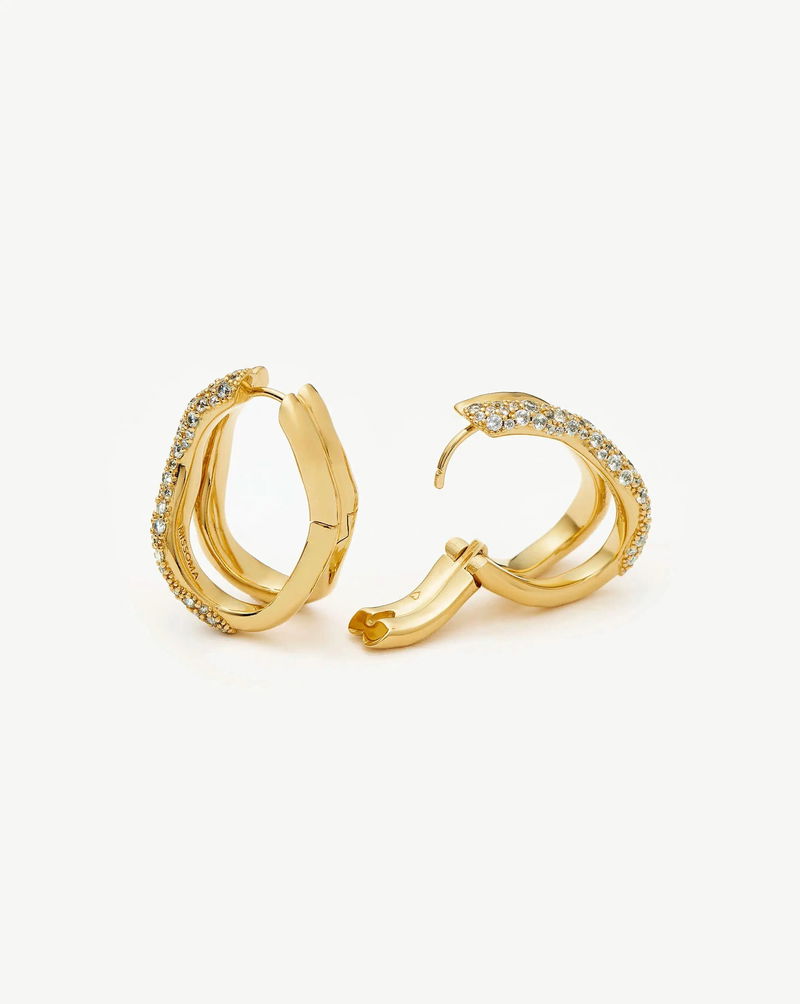 Get the look of two hoops with these medium-sized hoop earrings, inspired by our best selling Molten and Magma collections. One side features a smooth, sculptural finish while the other features a subtle shimmer with a frosting of snow pavé to mimic ice crystals. Artfully hand-set, this highly-skilled technique is usually only seen in the most delicate of fine jewellery pieces. Wear solo or stack with your favourite hoops and studs for party season styling.