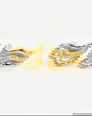Perfect for everyday wear, these stud earrings feature twisted detailing. An evolution of our best selling Molten and Magma collections, the molten gold texture gives the pieces a sculptural look with a frosting of artfully hand-set snow pavé to mimic ice crystals. This highly-skilled technique is usually only seen in the most delicate of fine jewellery pieces. Add a touch of sparkle to your stack or wear solo for simple styling. Stack with the Molten Twisted Small Hoop Earrings for an elevated look.
