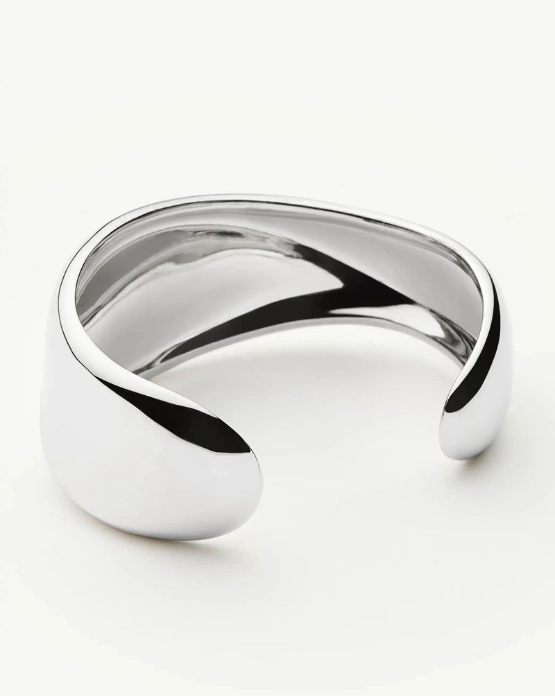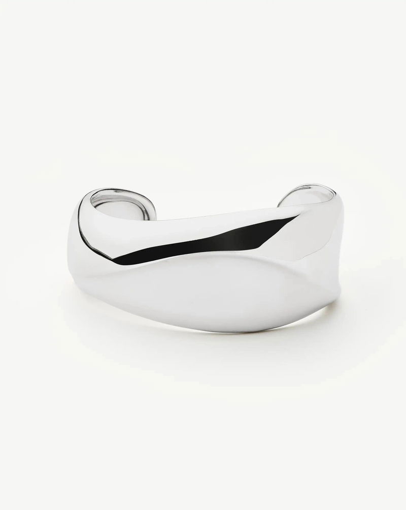 Inspired by sculptural shapes, this maximalist, chunky cuff bracelet features a molten design with ridge detailing. Let it shine solo to make a statement.