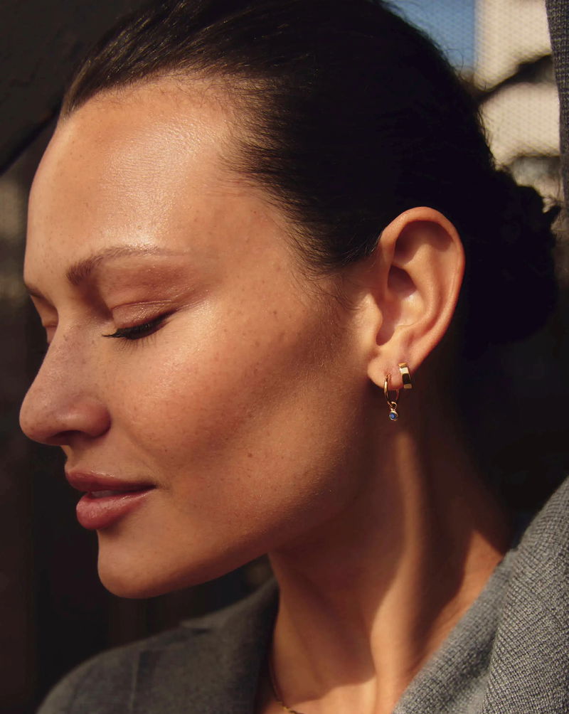 Bring your birth month a whole new meaning with your birthstone mini hoops. These timeless earrings feature removable charms that hold faceted natural blue lapis gemstones, symbolising strength and courage. The perfect gift for anyone born in September, layer or stack with the September Birthstone Bracelet or Necklace.