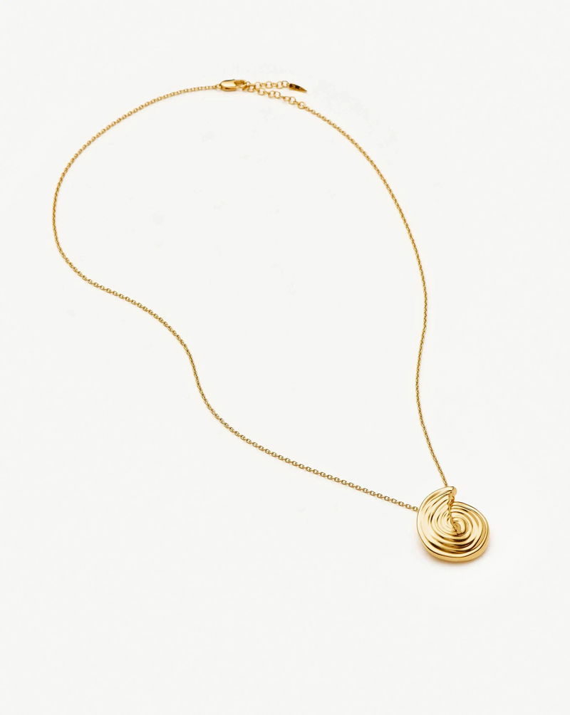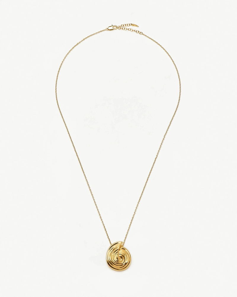 This statement spiral pendant necklace is perfect for every summer moment. Create your own unique layers by styling with staple gold chain necklaces or your favourite studs.