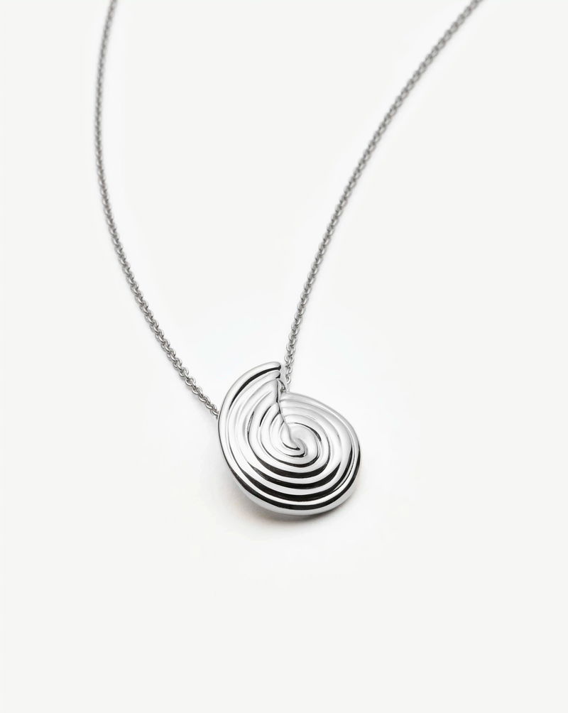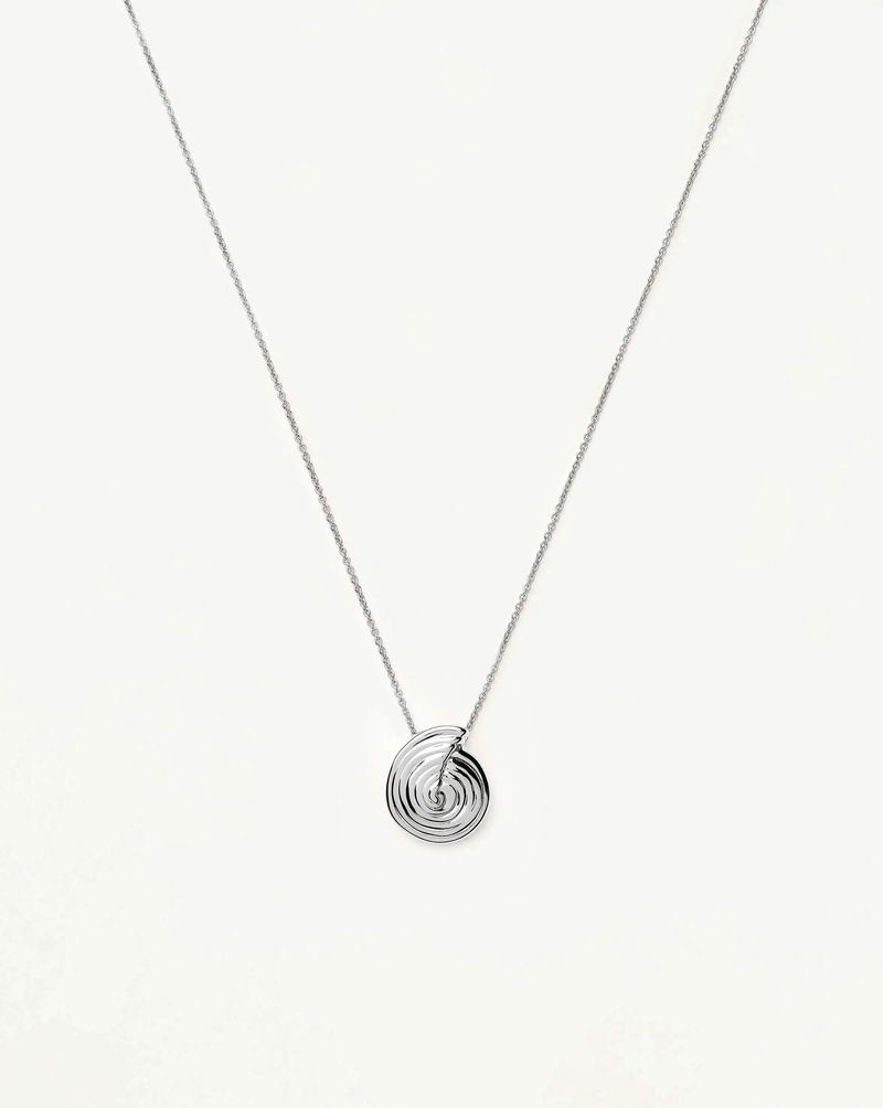This subtle spiral pendant necklace is the perfect elevated essential for every summer moment. Create your own unique layers by styling with staple silver chain necklaces or your favourite statement studs.