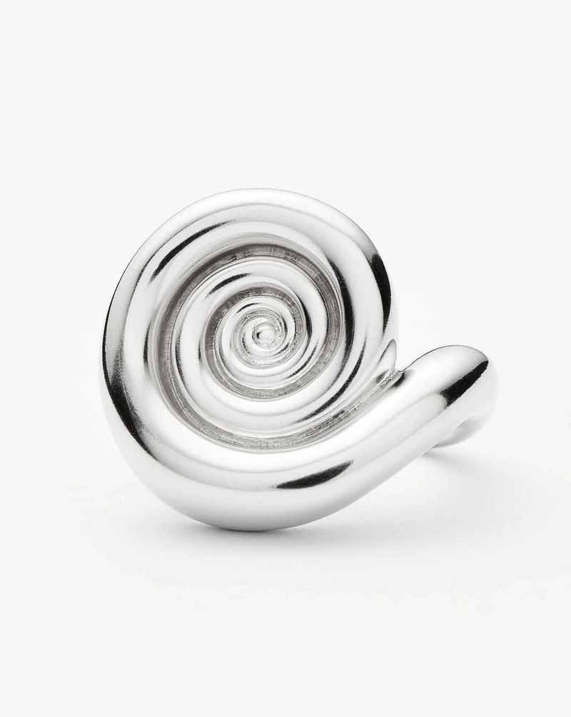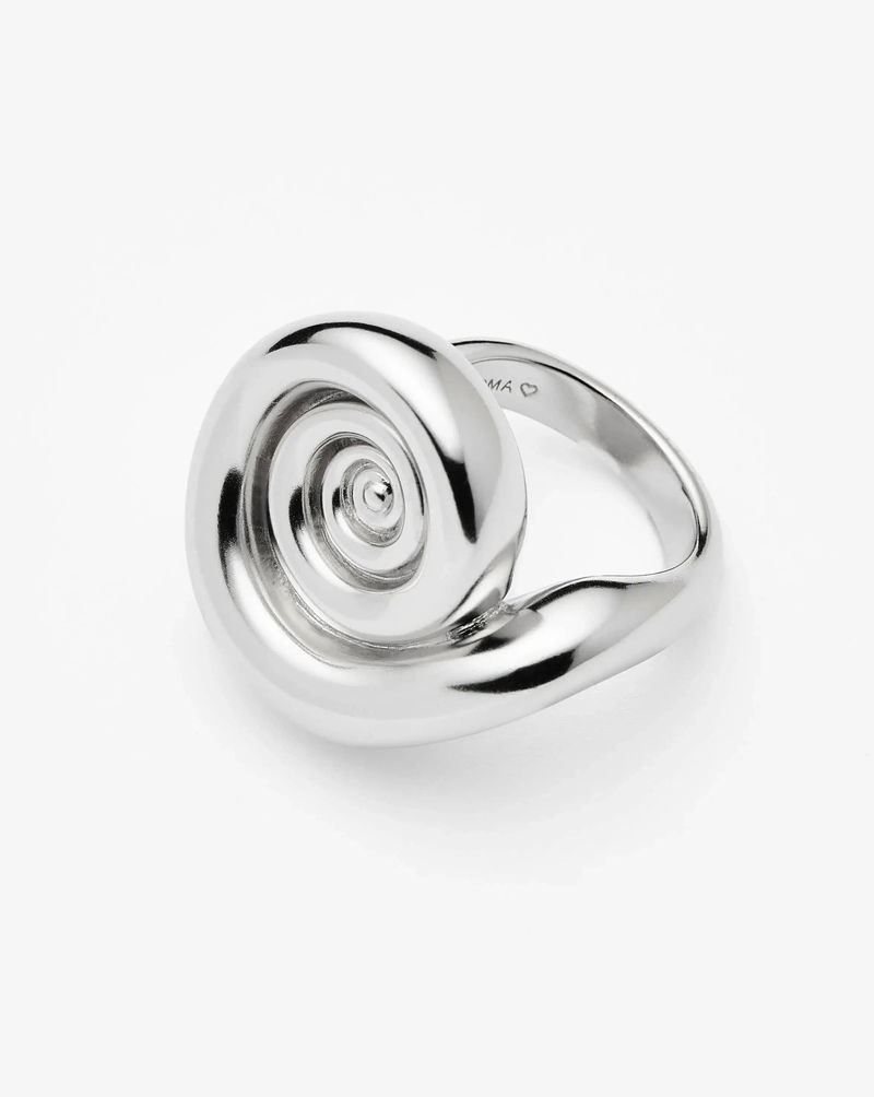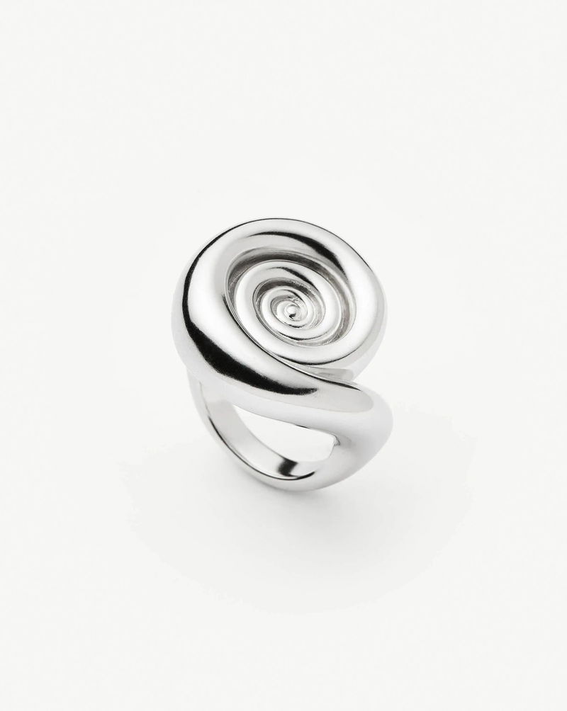 Inspired by elevated coastal shapes, this extra large statement ring features a silver spiral with a voluminous three-dimension effect.