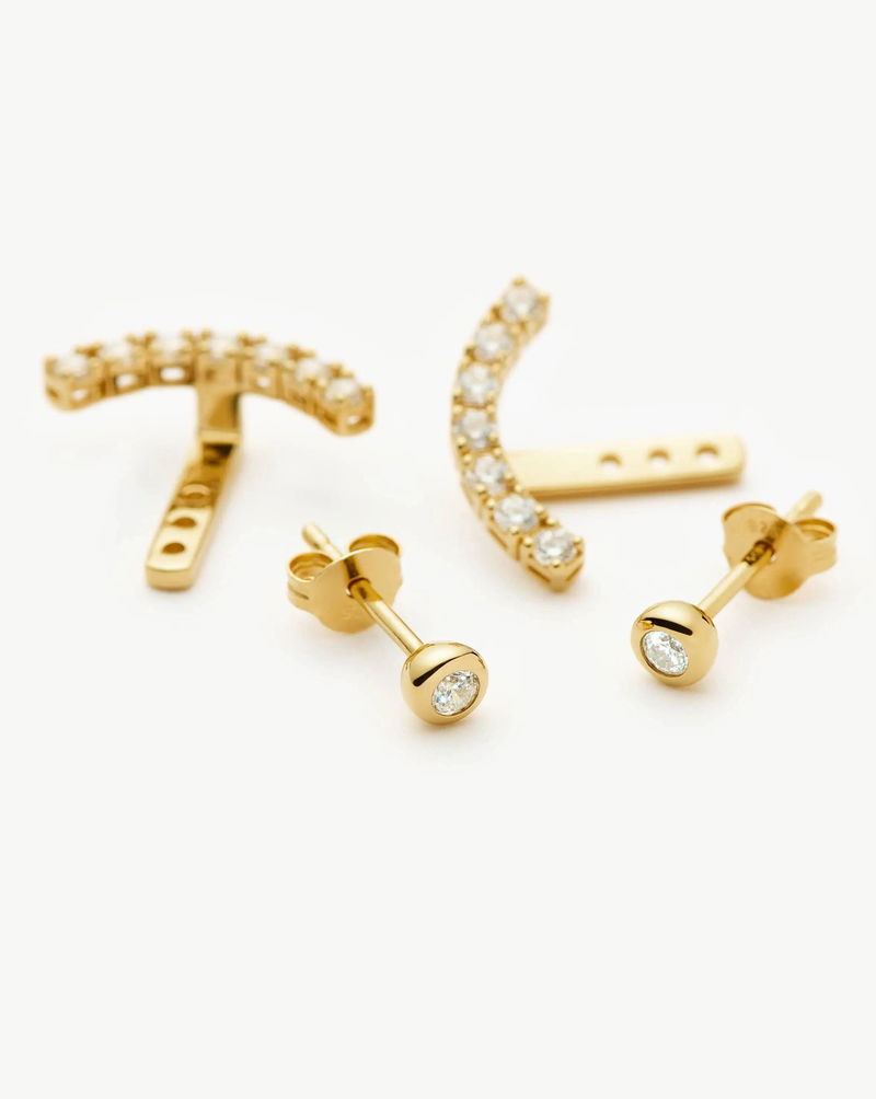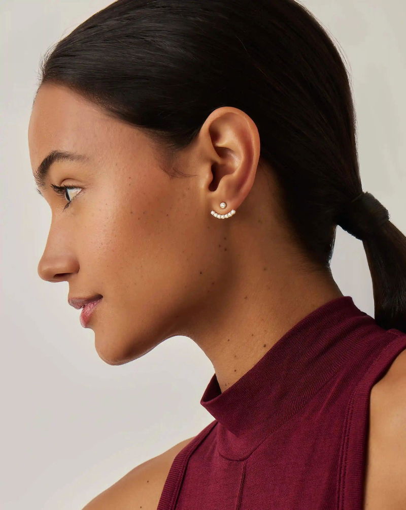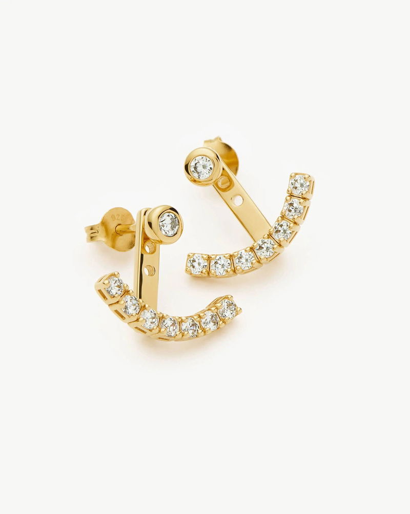 Stock will be available mid September, sign up below to be notified when it lands. These eye-catching earrings features a classic stud with a tennis jacket that sits below the ear lobe, embellished with cubic zirconia stones. The ear jacket is adustable to three heights to fit different lobe sizes. Style with our best selling Tennis Eternity Stacking Rings or Tennis Small Hoop Earrings.
