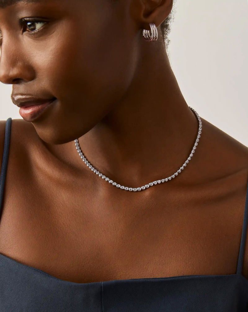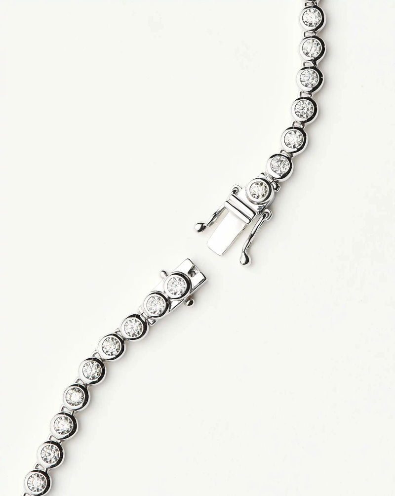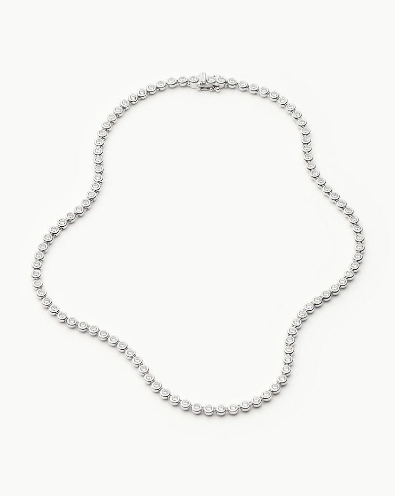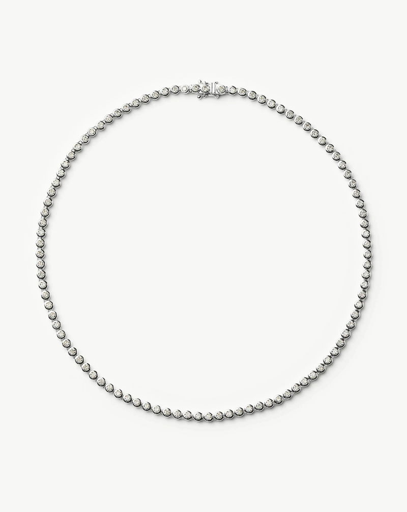 A timeless necklace with beaded detailing and embellished with rounded cubic zirconia stones. The classic box clasp features both a double-ridged push-button closure and a lever closure for added security.