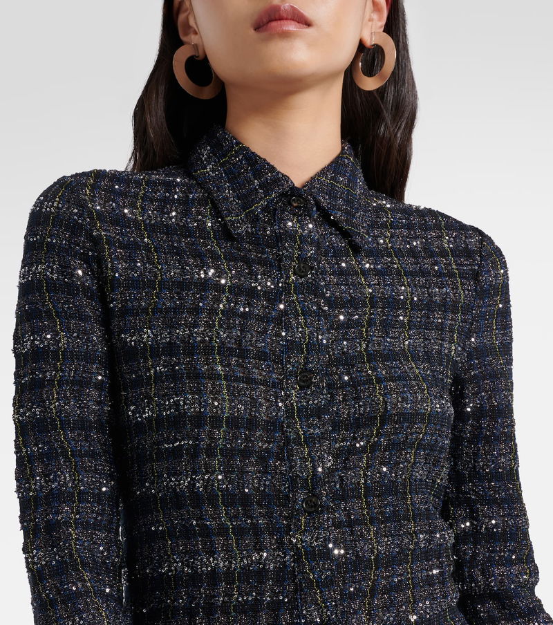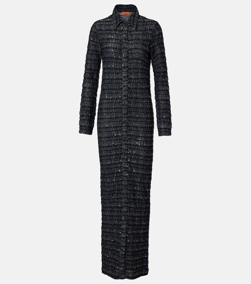 A style with a bold and sophisticated character, this Missoni shirt dress is crafted from the brand's signature lamé threads. This elegant checked pattern enhances the longline silhouette, lending an interesting vibrancy to the ensemble.