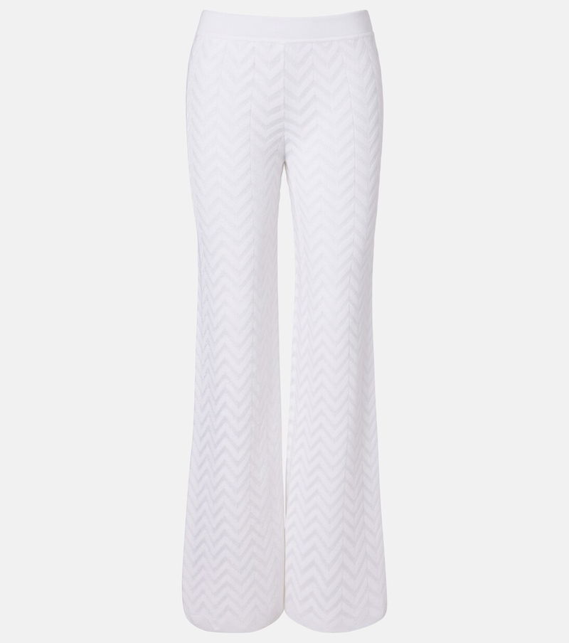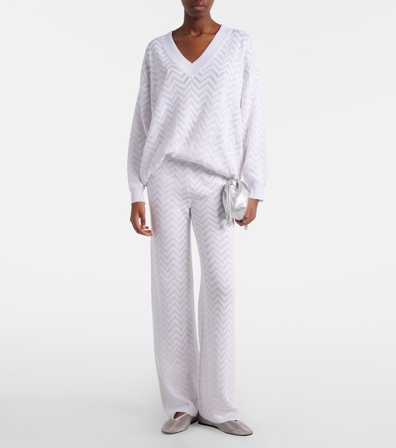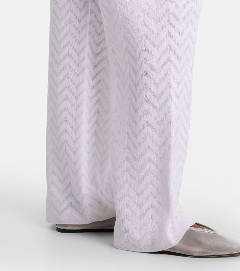 These wide-leg pants are made from a cotton blend and celebrate Missoni’s heritage through a tonal chevron motif. The lightweight, fluid fabric naturally follows the leg, expressing Missoni’s unmistakable stylistic signature.