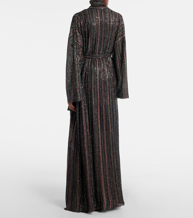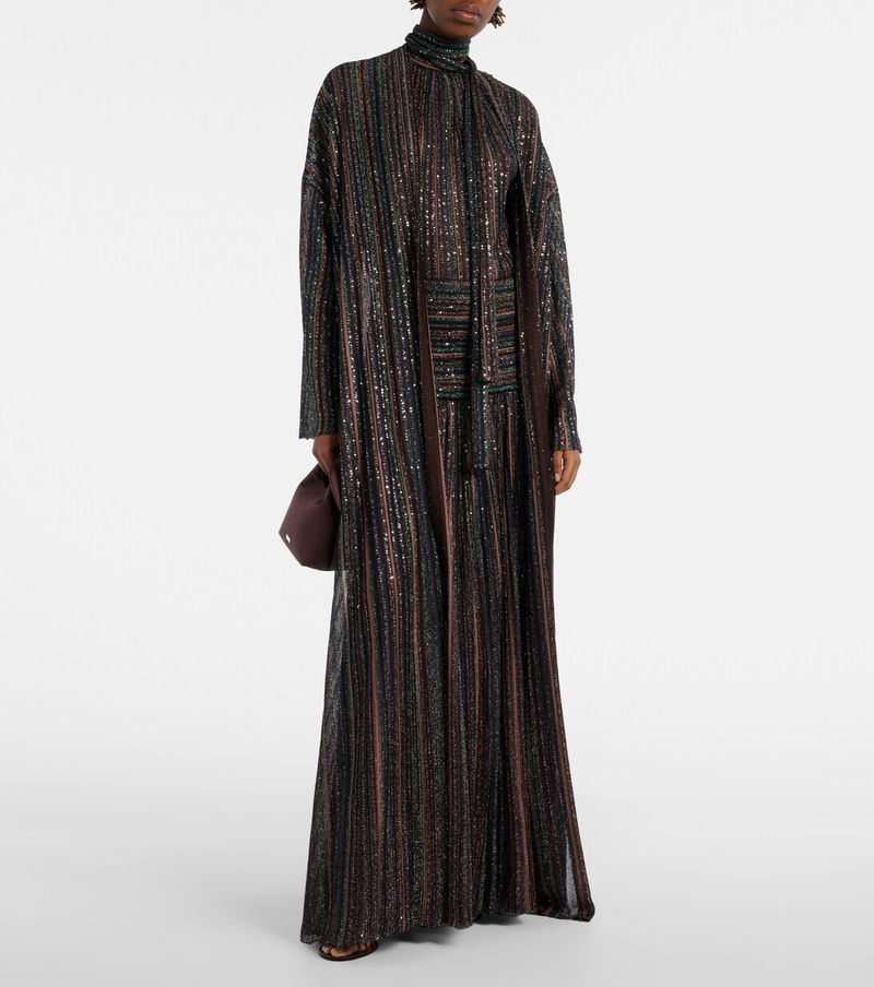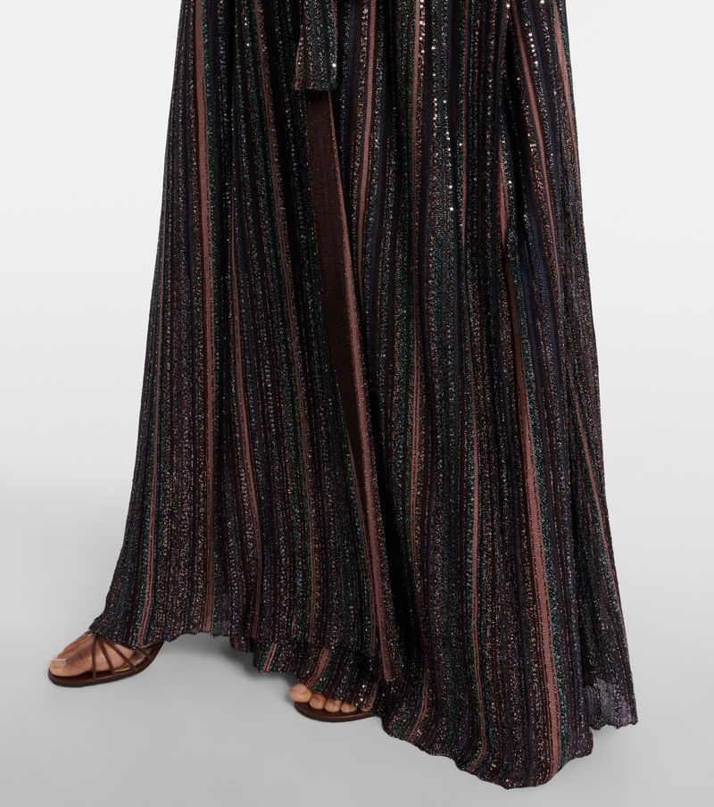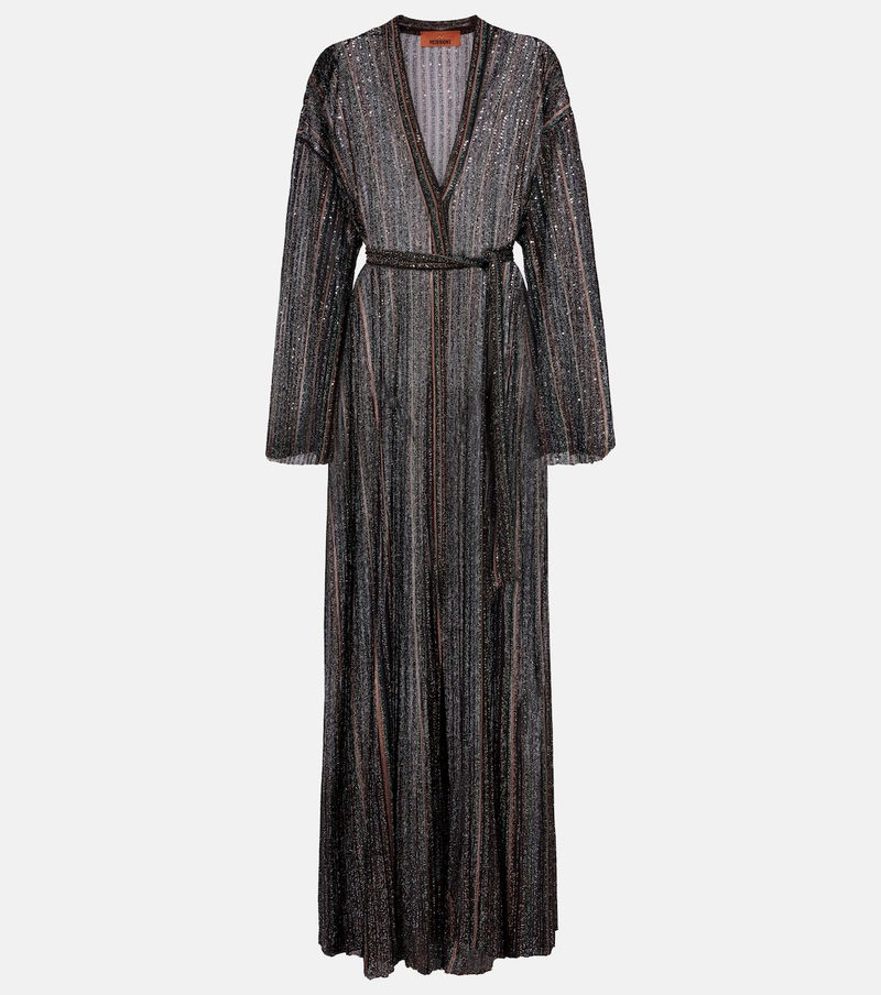 Defined by luminous transparencies and dazzling details, this cardigan by Missoni is ribbed-knitted from lamé. The style is defined by a tonal chevron motif that defines the brand's signature.