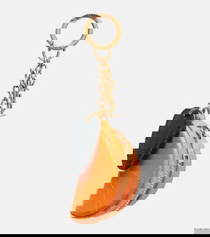 Keychain, Textured-leather, Cord, Gold hardware, Clasp fastening.