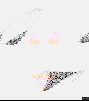 Triangle bikini, Soft cups, Low-rise briefs, Metallic, Striped, Crochet-knit, Fully lined, Top ties at neck and back, briefs tie at sides, Hand wash, Made in Italy, Sunscreen and chlorine can discolor swimwear. Please follow care instructions, To get the best from your Missoni beachwear, we advise that you do not wear it to swim, Missoni Mare's bikini is crochet-knitted with colorful stripes, the metallic ones will sparkle so prettily in the sun. The triangle cups and mid-rise briefs are lined for added coverage and have adjustable ties for a customizable fit.