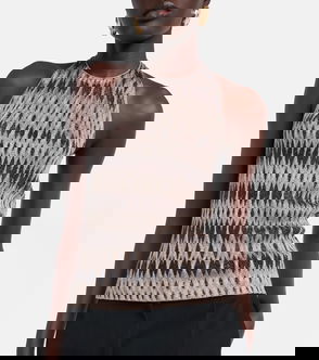 Defined by luminous transparencies and plays of reflection, this halterneck top by Missoni is ribbed-knitted from lamé. The style is covered in sequins and complete with a scarf collar for a sophisticated touch.