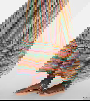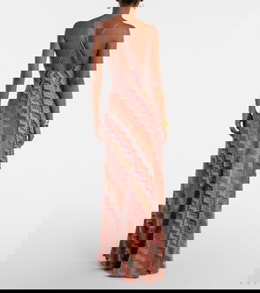 Special occasions are glamorous in this gown from Missoni. The design boasts multicolored stripes of dazzling sequins and a fitted band around the waist.