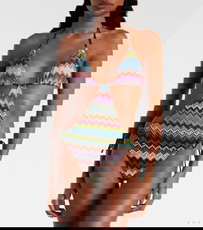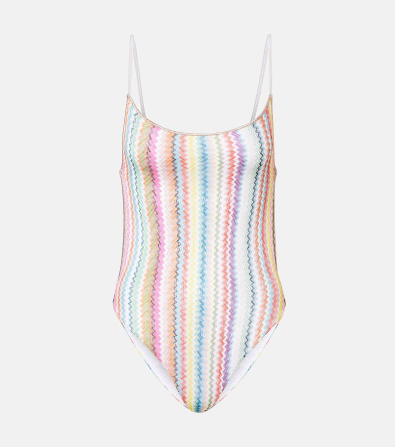 Bring glamour to the seaside with this swimsuit from Missoni. The piece features an open back with self-ties and the signature Zig Zag print, first introduced in the 1950s and now a symbol of Italian luxury.