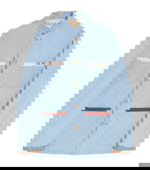 Miu Miu has taken the world by storm with its future-forward approach to design and expressions of personal identity. This denim blouson jacket is shaped for a relaxed fit with leather logo detailing and a corduroy shirting-style collar.