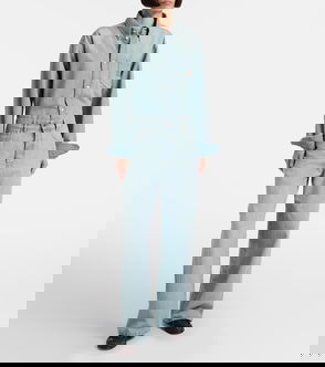 Miu Miu's attention to detail is highlighted at the waist of these mid-blue jeans, fitted with shimmering crystals that gives them a traditional feminine note. They're shaped in Italy to a wide-leg silhouette with five pockets and the line's logo embroidered at the back pocket.