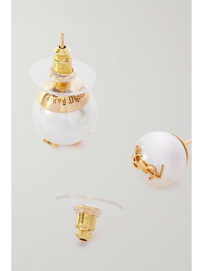 These drop earrings from Miu Miu are made from gold-plated brass. They're adorned with round faux pearls and finished with a logo-lasered ball pendant.