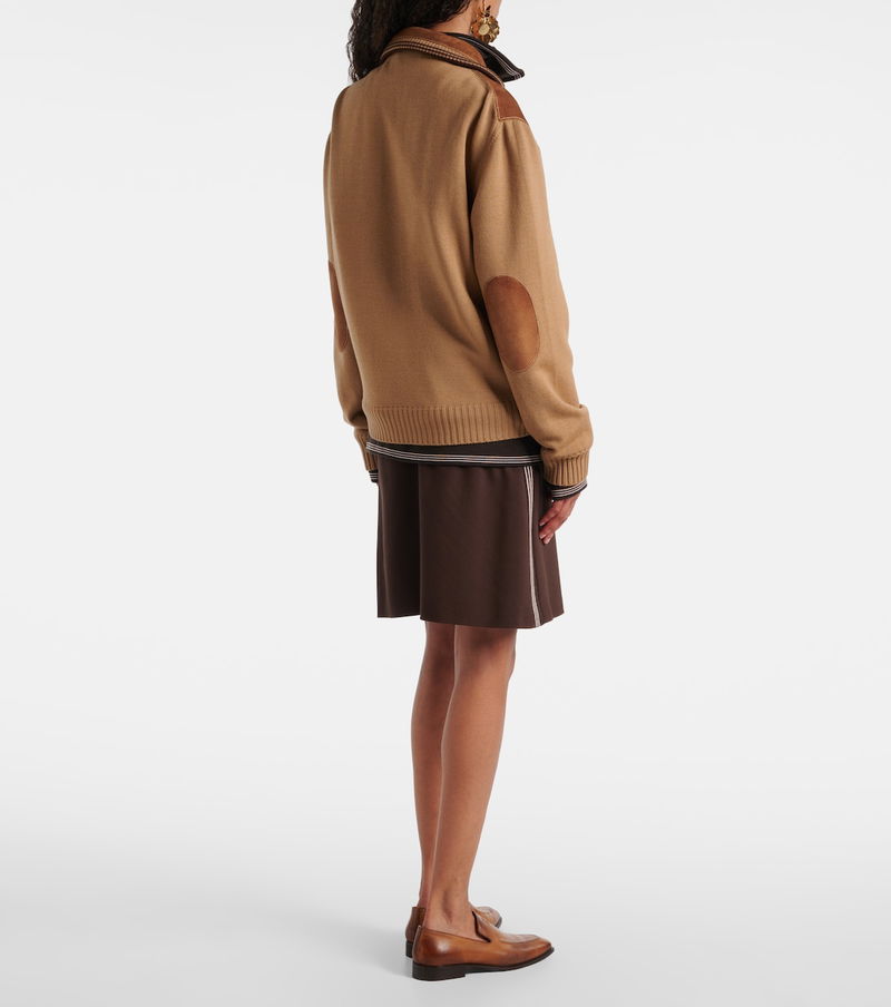 Crafted from leather, this jacket by Miu Miu is a timeless addition to any well-curated wardrobe. The style features ribbed trims at the cuffs and hem, a zip-front closure, side slit pockets, and a discreet embossed logo.