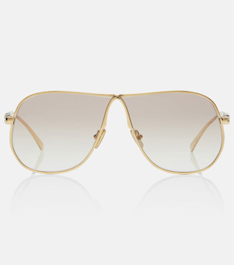 Miu Miu has taken the world by storm with its future-forward approach to design and expressions of personal identity. Complete with logos at the temples, these sunglasses are an aviator pair with gold-toned wire frames.