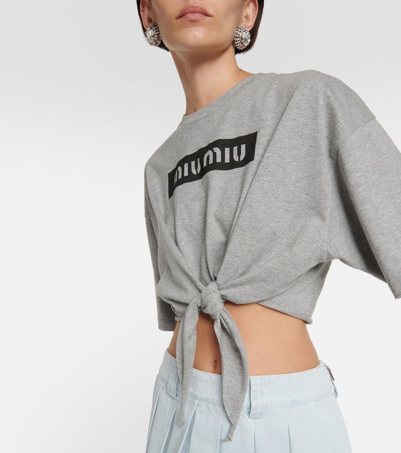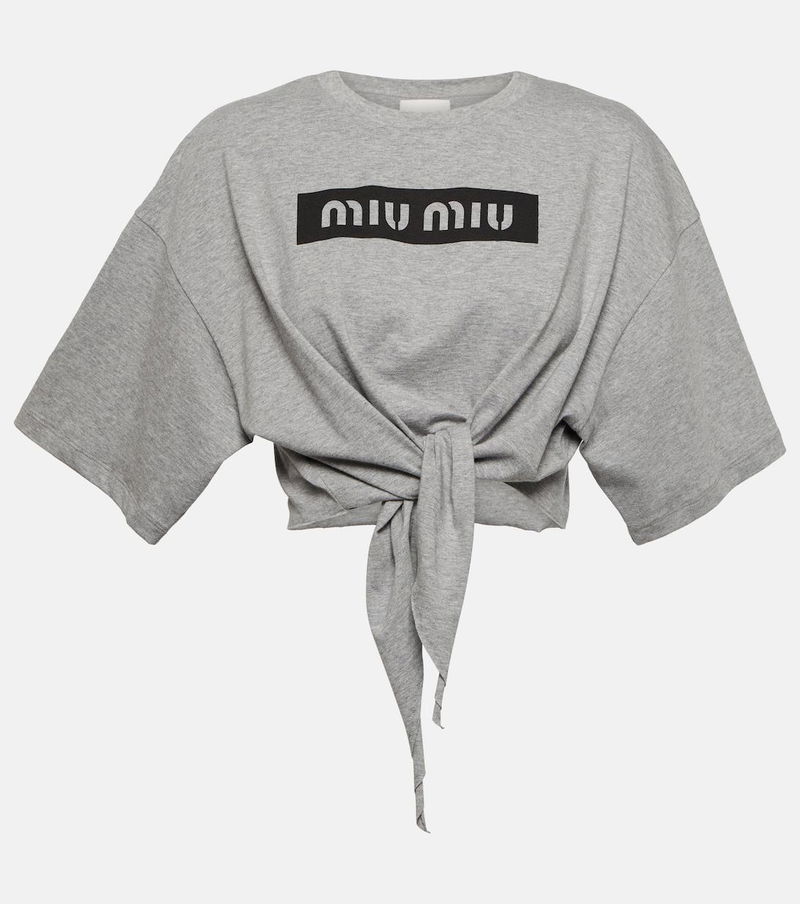 This top from Miu Miu is perfect for casual weekends. Made from pure cotton, the cropped design features a logo print across the chest and offers a relaxed fit with a wrap-tie hemline.