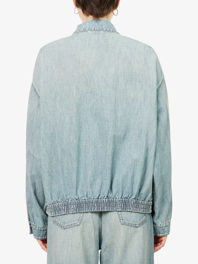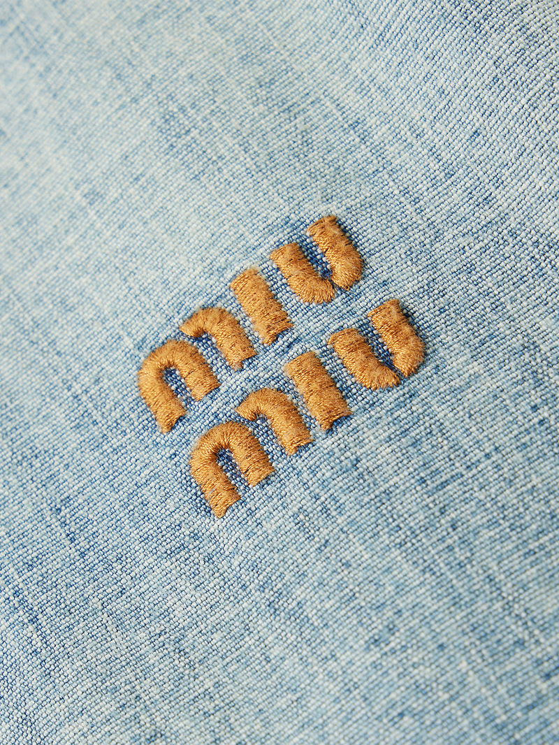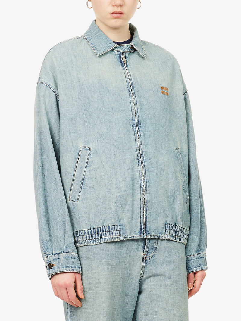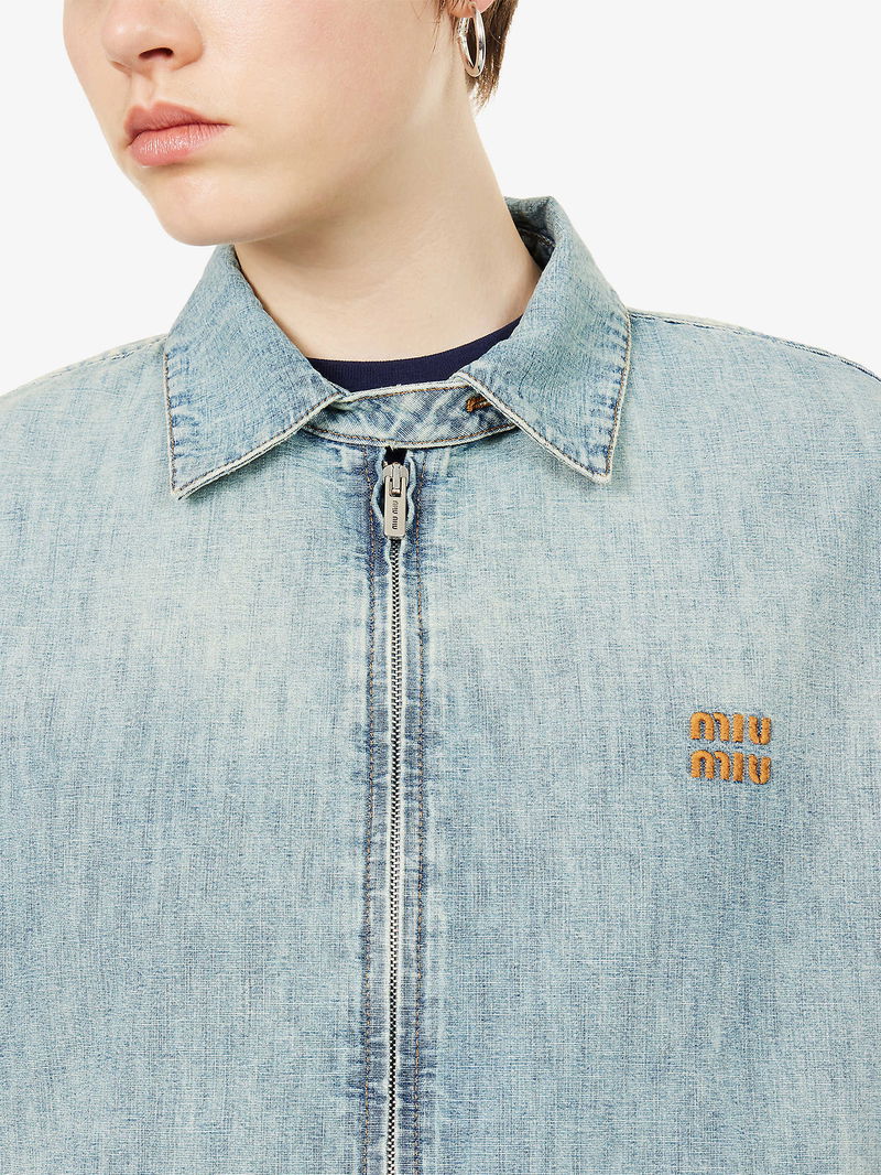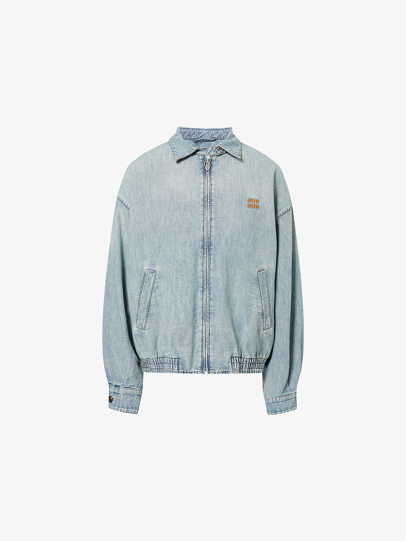 Logo-Embroidery Blouson Chambray Cotton Jacket