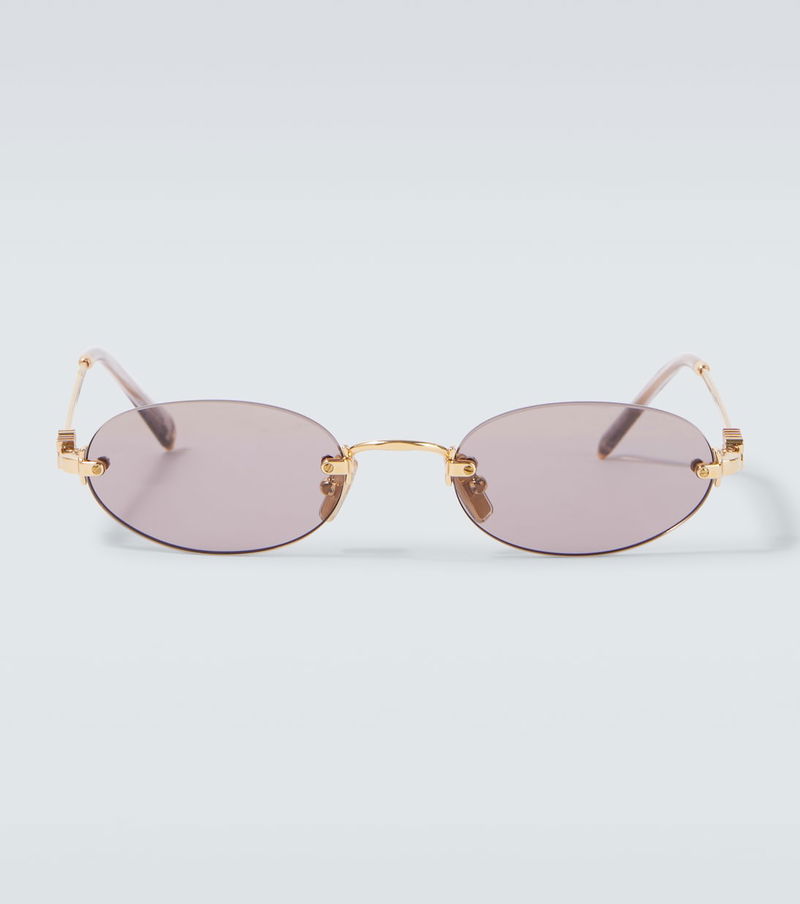 Miu Miu has taken the world by storm with its future-forward approach to design and expressions of personal identity. Complete with logos at the temples, these sunglasses have gold-toned wire frames and oval lenses.