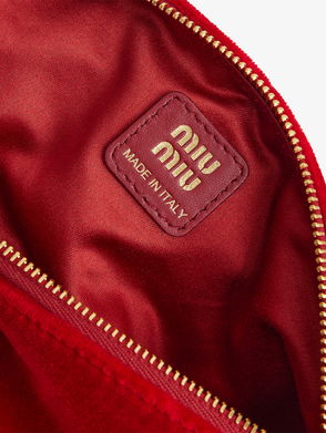 Uninhibited and deliberately subversive: these are the hallmarks of Miuccia Prada’s Miu Miu. This hair clip is made from velvet to a bow-design with logo lettering.