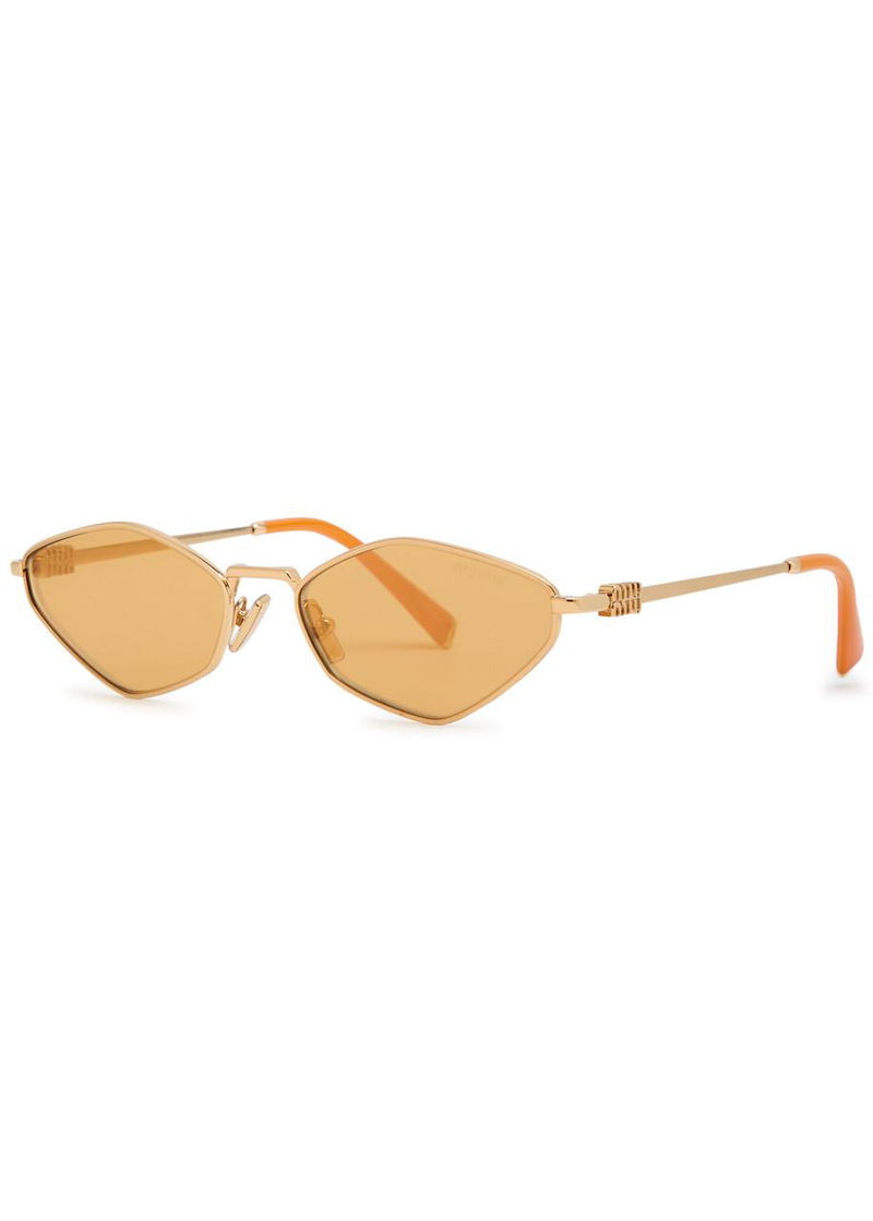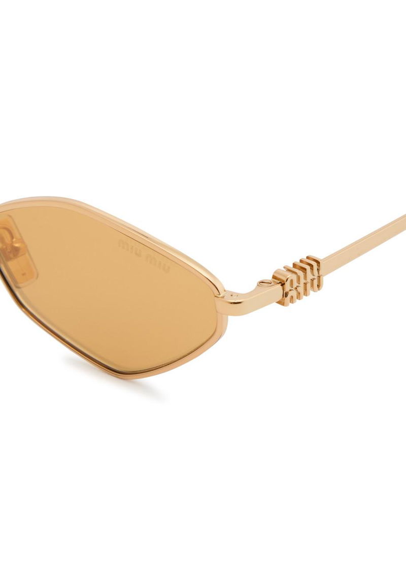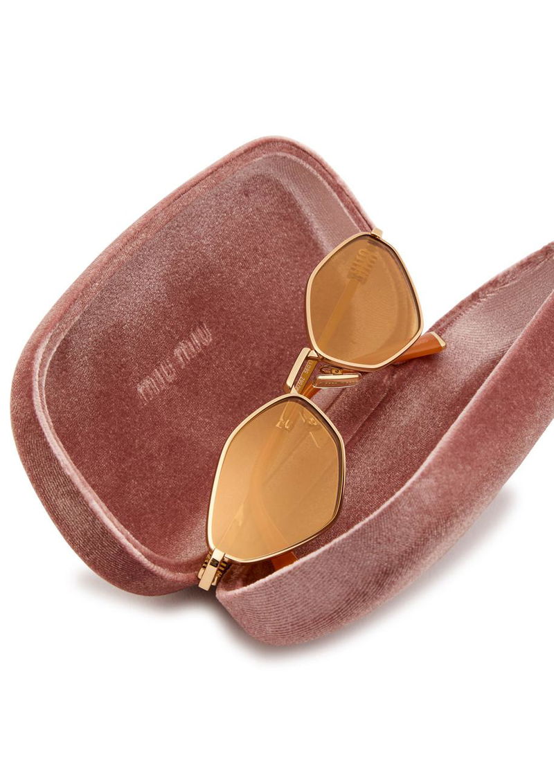 Miu Miu metal sunglasses. Designer-stamped lenses, designer plaque at arms, acetate tips.