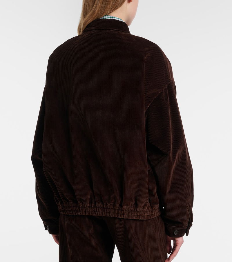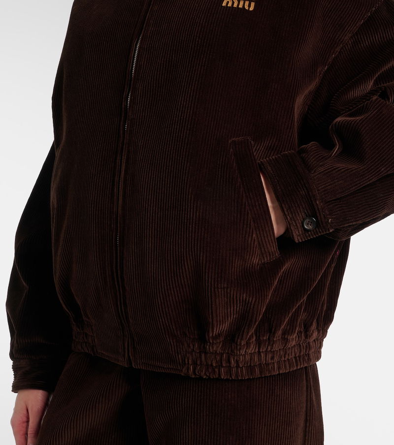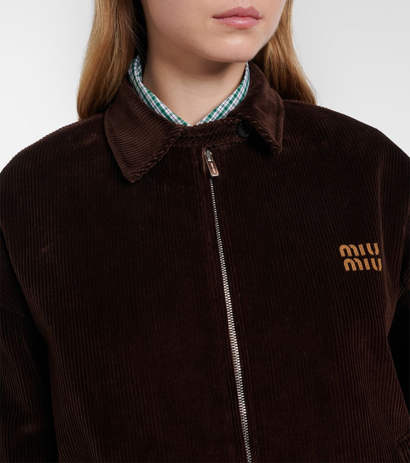 Uninhibited and deliberately subversive: these are the hallmarks of Miuccia Prada’s Miu Miu. This blouson jacket is made from cotton corduroiy with a contrasting leather logo, a zipped front, and an elasticated waistband.